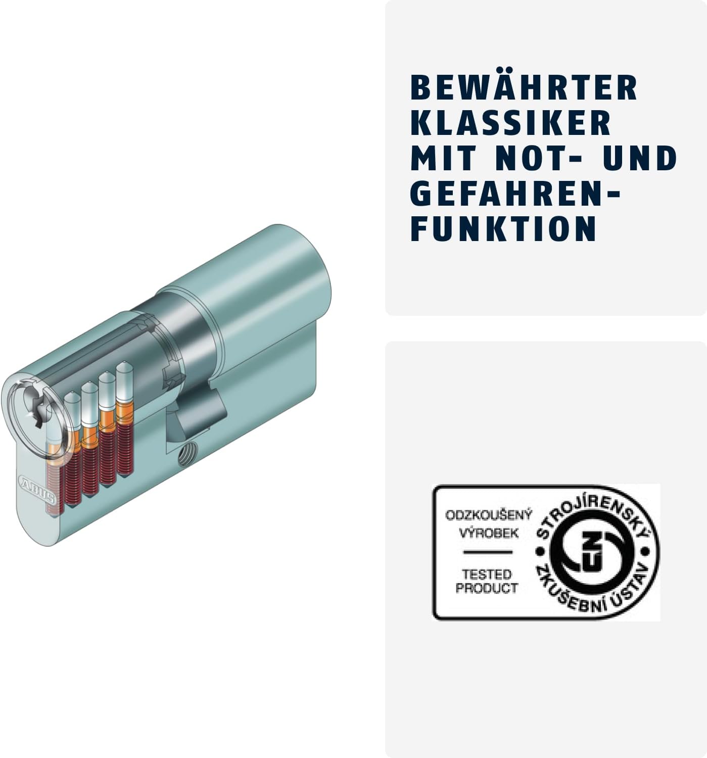 - Pilzkopf-Gehäusestifte und parazentrisches Schlüsselprofil: erhöhen den Widerstand gegen Picking und andere Manipulationsversuche des Türschlosses und erschweren so Einbruchsversuche