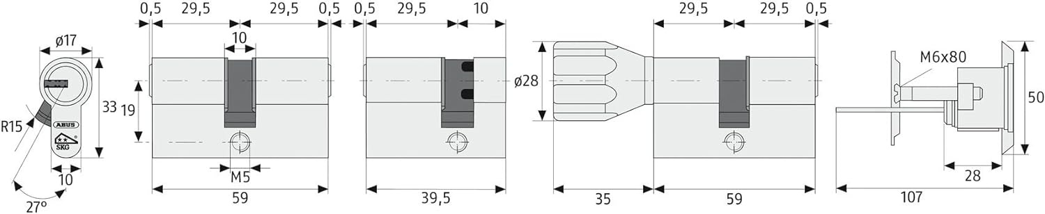• Mit Not- und Gefahrenfunktion (beidseitig schliessbar, auch wenn innen der Schlüssel steckt)