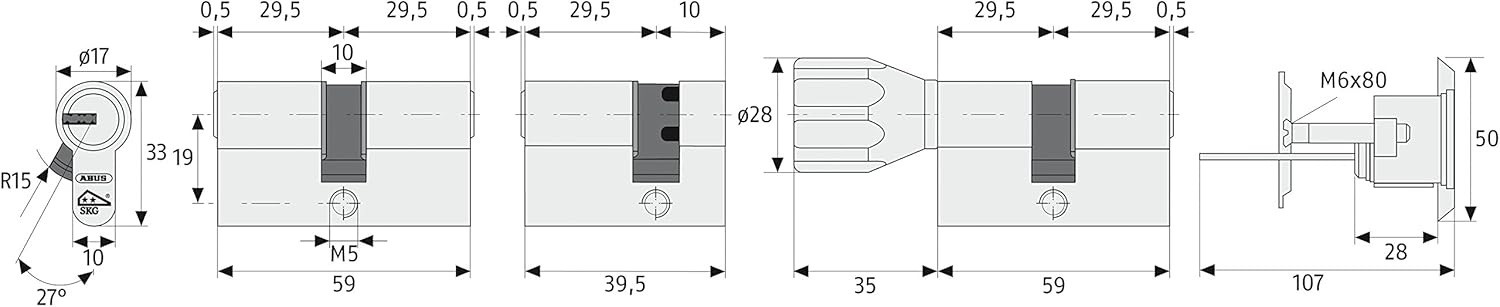 - Mit Not- und Gefahrenfunktion (beidseitig schliessbar, auch wenn innen der Schlüssel steckt)