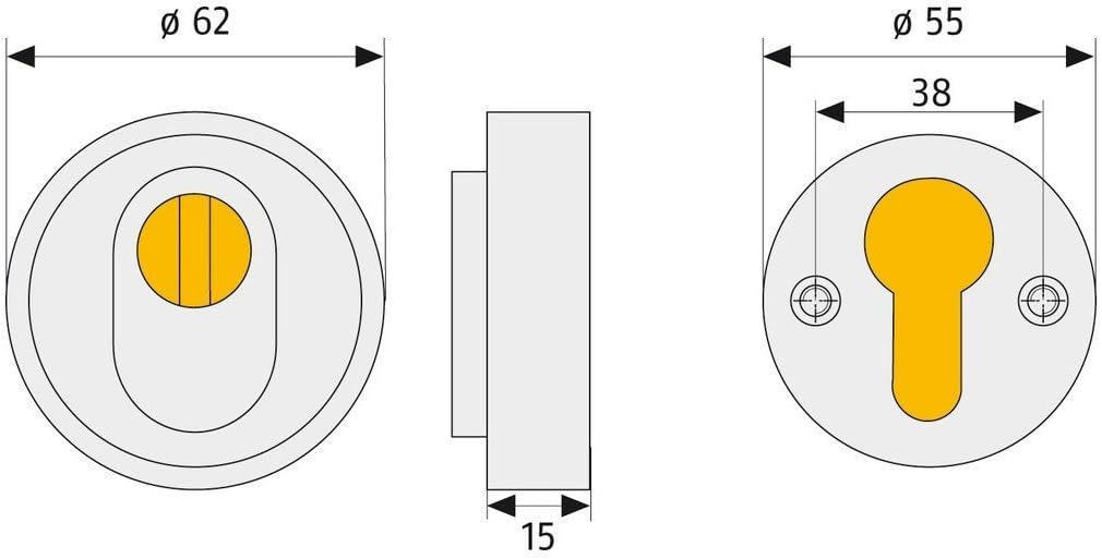 • Runde Schutzrosette für alle Türen aus Holz bis zu einer Türstärke von 60 mm