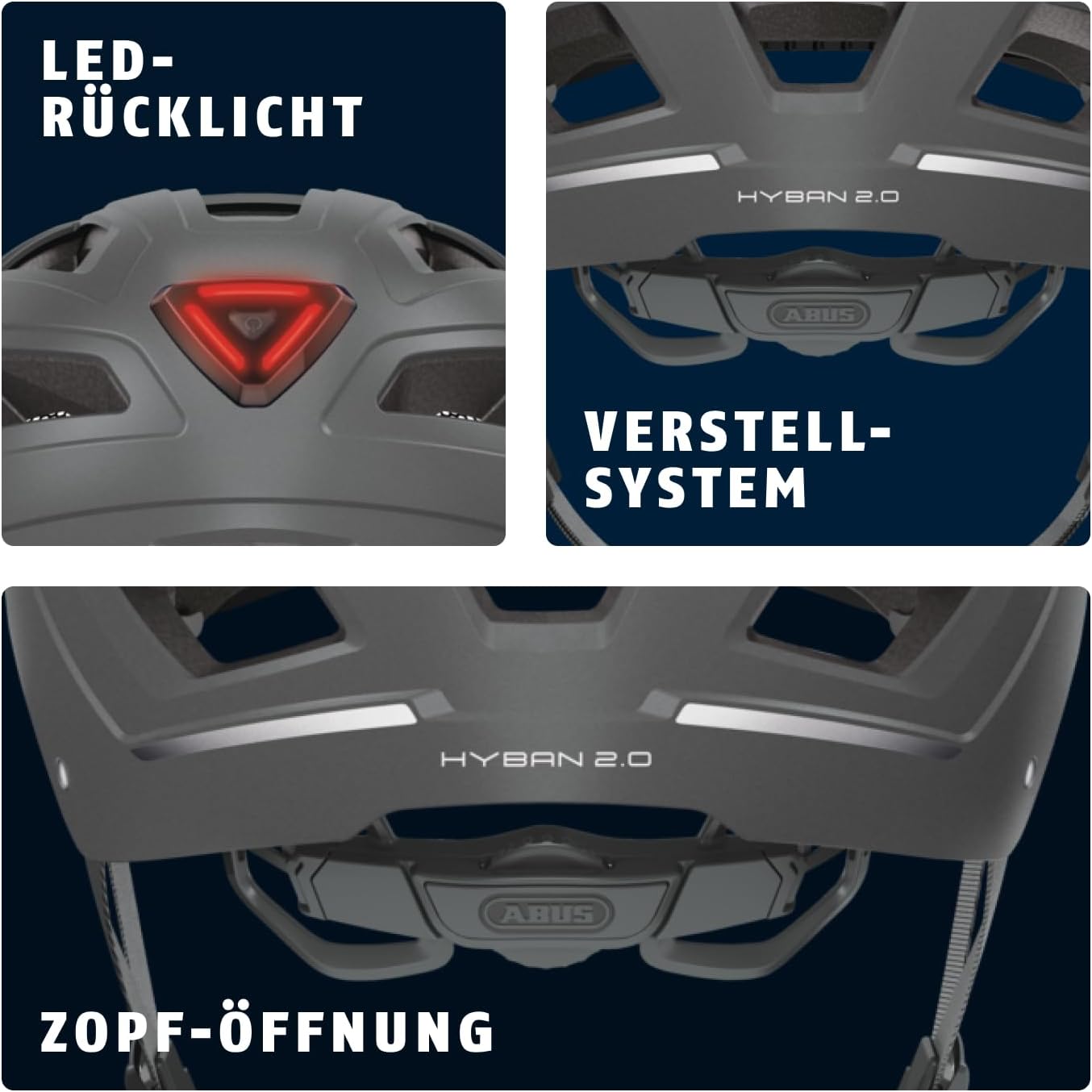 ABUS Stadthelm Hyban 2.0 - Fahrradhelm mit Rücklicht, ABS-Hartschale, guter Passform - für Damen und