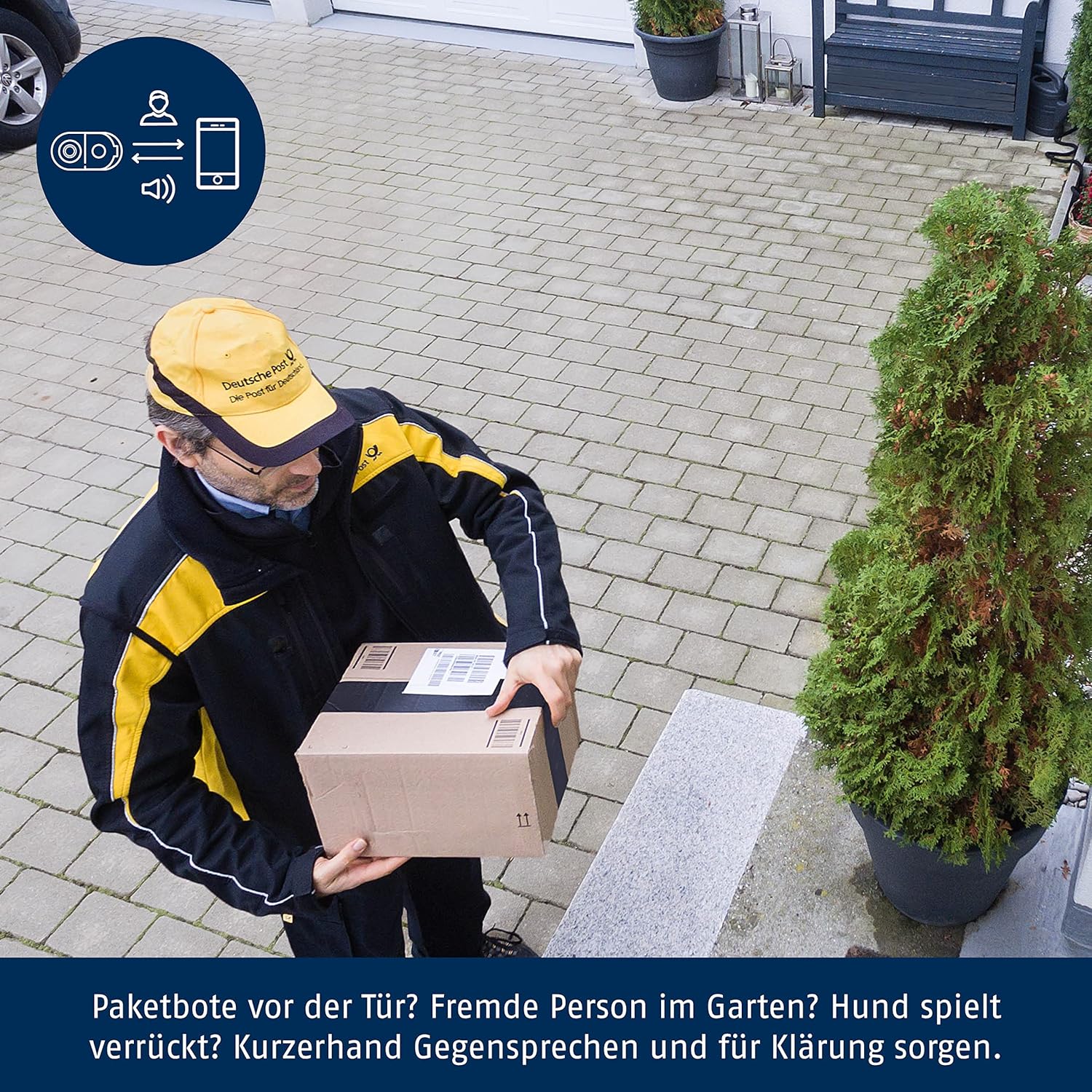- Schnell einsatzbereit durch einfache Inbetriebnahme (mit App-Assistent in wenigen Minuten); Zugriff auf Livestream, Speicher sowie alle Funktionen (Bewegungsmelder, Weisslicht-LED, digitales Zoomen, 2-Wege-Audio durch Lautsprecher & Mikrofon etc.)
