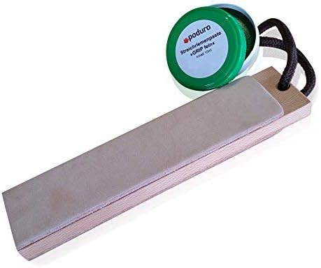 - DOPPELSEITIGER STREICHRIEMEN als Set » PODURO JUNGLE STROP « mit Chromoxid Streichriemenpaste PODURO GRIP