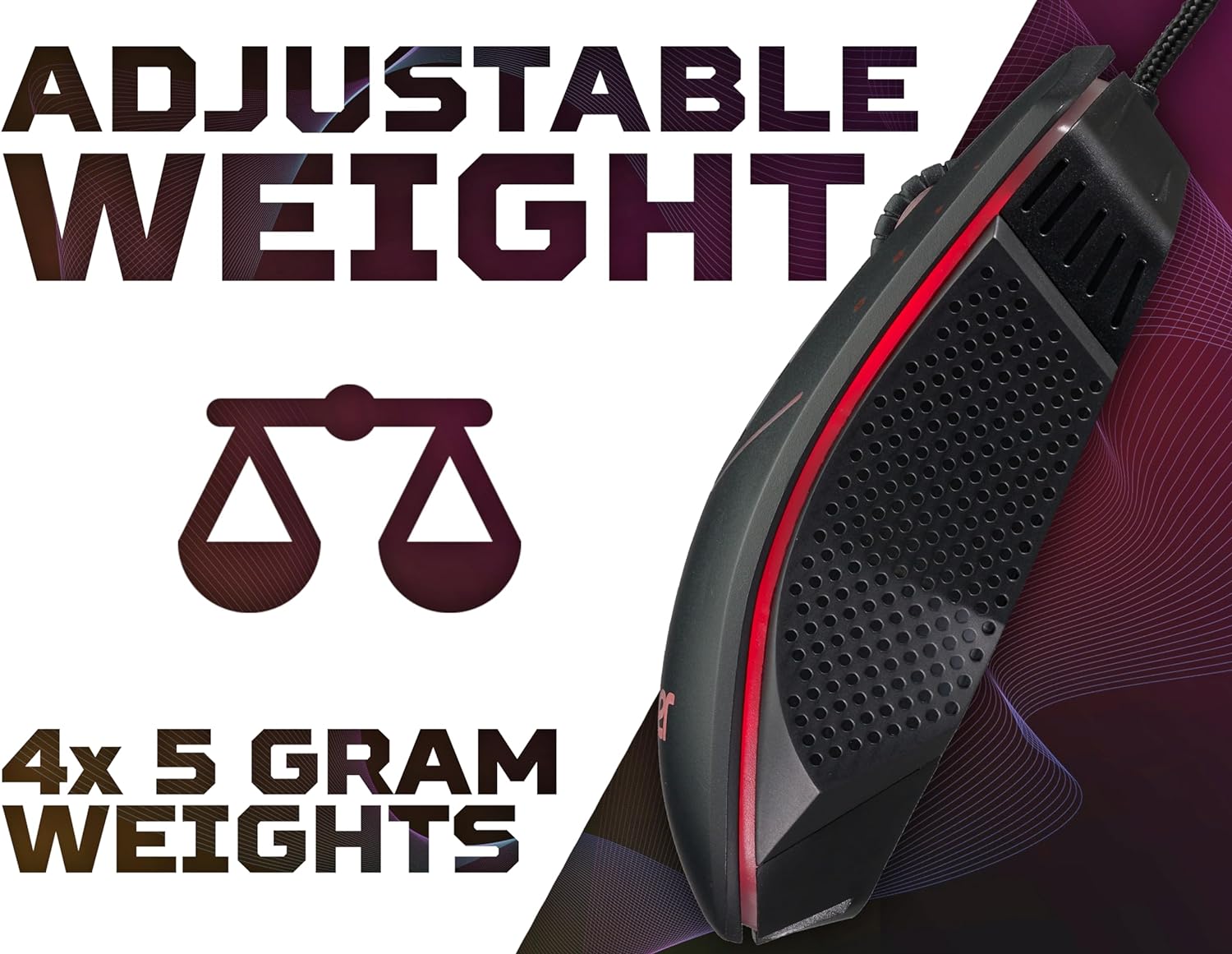 - Voll ausgestattet: Acht Tasten (inklusive Burst Fire), optionale Gewichte und die Farb-LEDs beweisen, dass dies nicht nur irgendeine gewöhnliche Maus ist