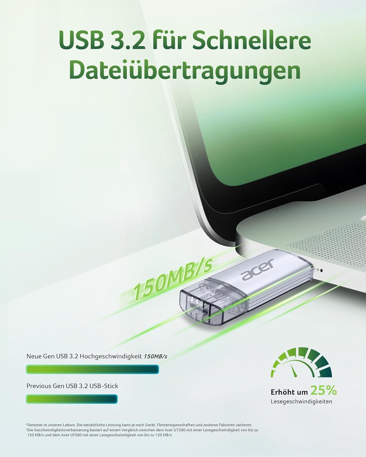 - Blitzschnell - USB 3.2 Gen1 mit bis zu 150 MB/s Lesegeschwindigkeit – spart Zeit beim Übertragen grosser Dateien.