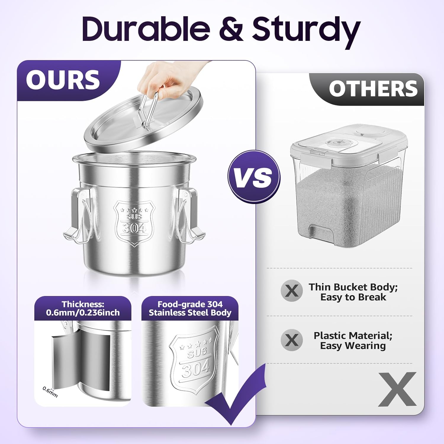 • Breites Anwendungsspektrum: sehr gut geeignet zur Aufbewahrung verschiedener trockener/nasser Lebensmittel wie Reis, Mehl, Getreide, Getreide, Öl, Milch, Wein, Wasser, etc