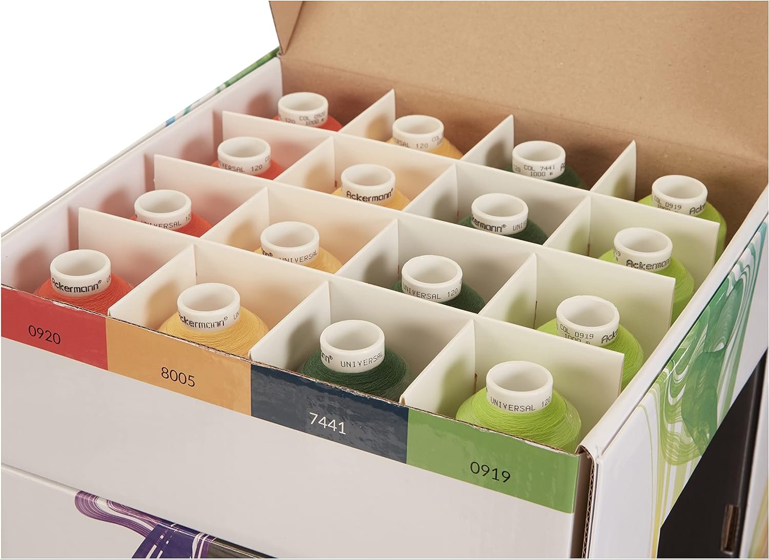 - 64x 1.000m ACKERMANN UNIVERSAL 120 Nähgarn auf Mini-King-Spule