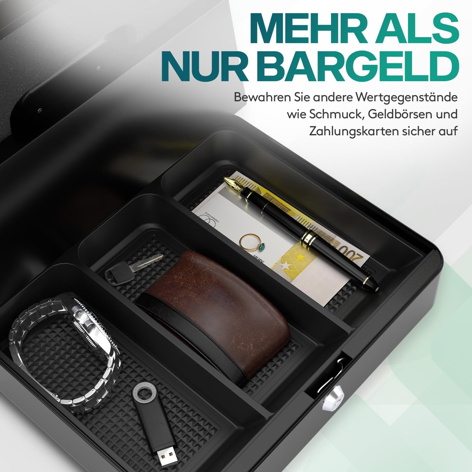 - Geld Kassette zum Abschliessen - Mit den 2 mitgelieferten Schlüsseln ist die Geldkassette abschliessbar. Ausserdem besteht sie aus stossfestem Stahl