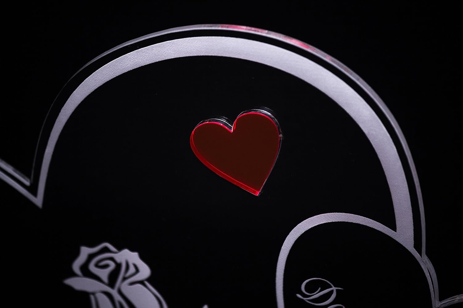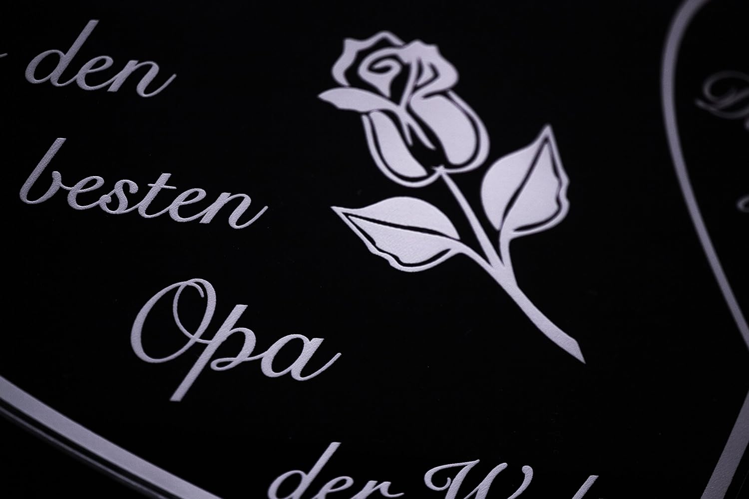 - Das Acrylglas ist durchsichtig und Farblos, die Gravur ist Weiss