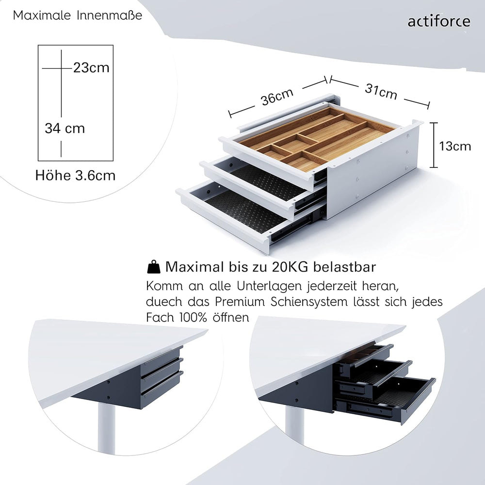 - ✅ EFFIZIENTERES ARBEITEN - Ein unaufgeräumter Schreibtisch beeinträchtigt deine Produktivität! Mit der ausziehbaren Actiforce Schublade hat dies ein Ende, denn das durchdachte Organizer-System, ist genau für deine Bedürfnisse konzipiert