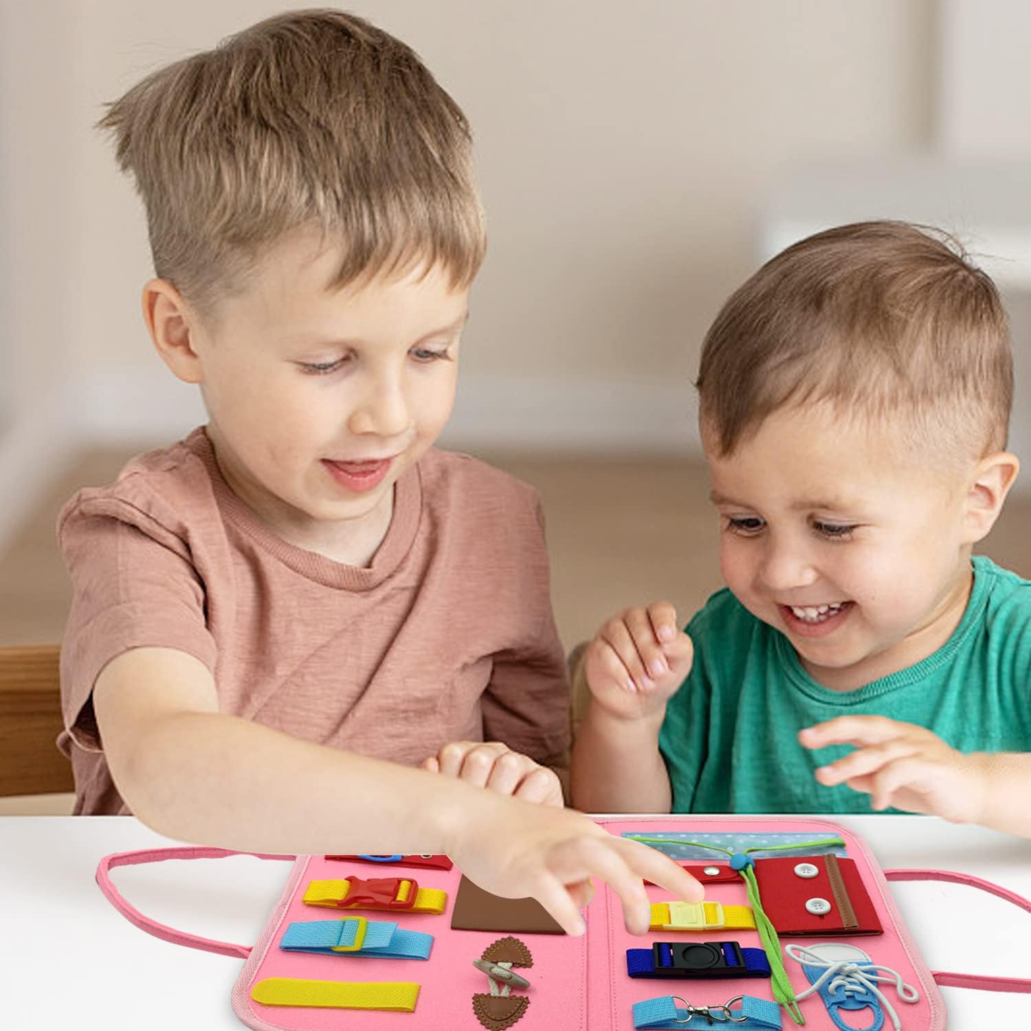 - 👚Grundlegende Lebenskompetenzen entwickeln: Dieses multifunktionales kleinkind-beschäftigungsbrett enthält 14 verschiedene Zubehörteile, Reissverschlüsse, Einstellschnallen, Schnallen, Knöpfe, Klettverschlüsse, Druckknöpfe, Gummibänder und