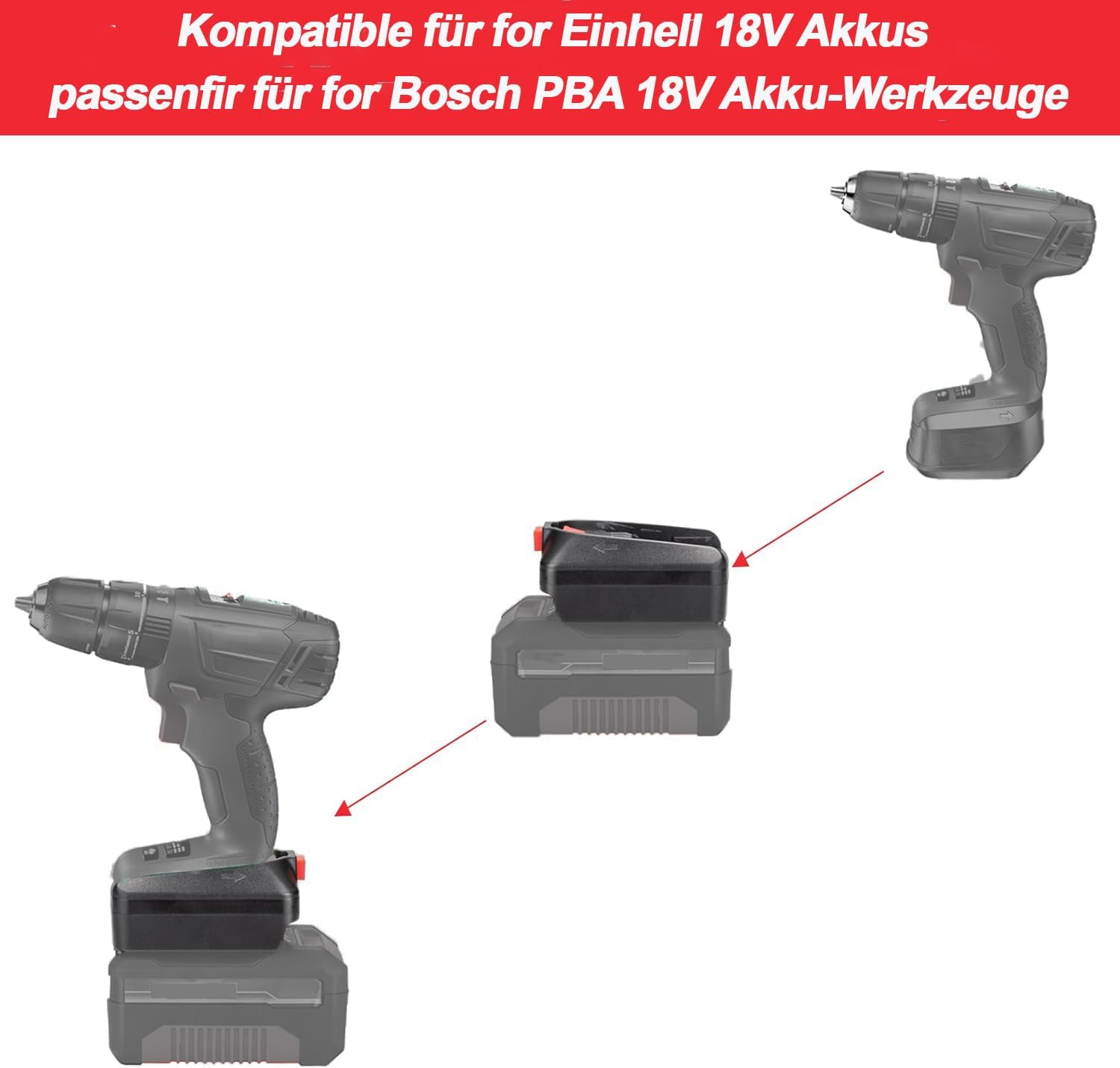 - 1. Arbeiten Sie mit dem von für Einhell 18V Lithium-Ionen Akku, der den für Bosch Professional 18V-System PBA ersetzen kann. Tipps: wenn Ihr Gerät einen Adapter benötigt, der in das Batteriefach eingelegt werden muss, um es mit Strom zu versorgen,