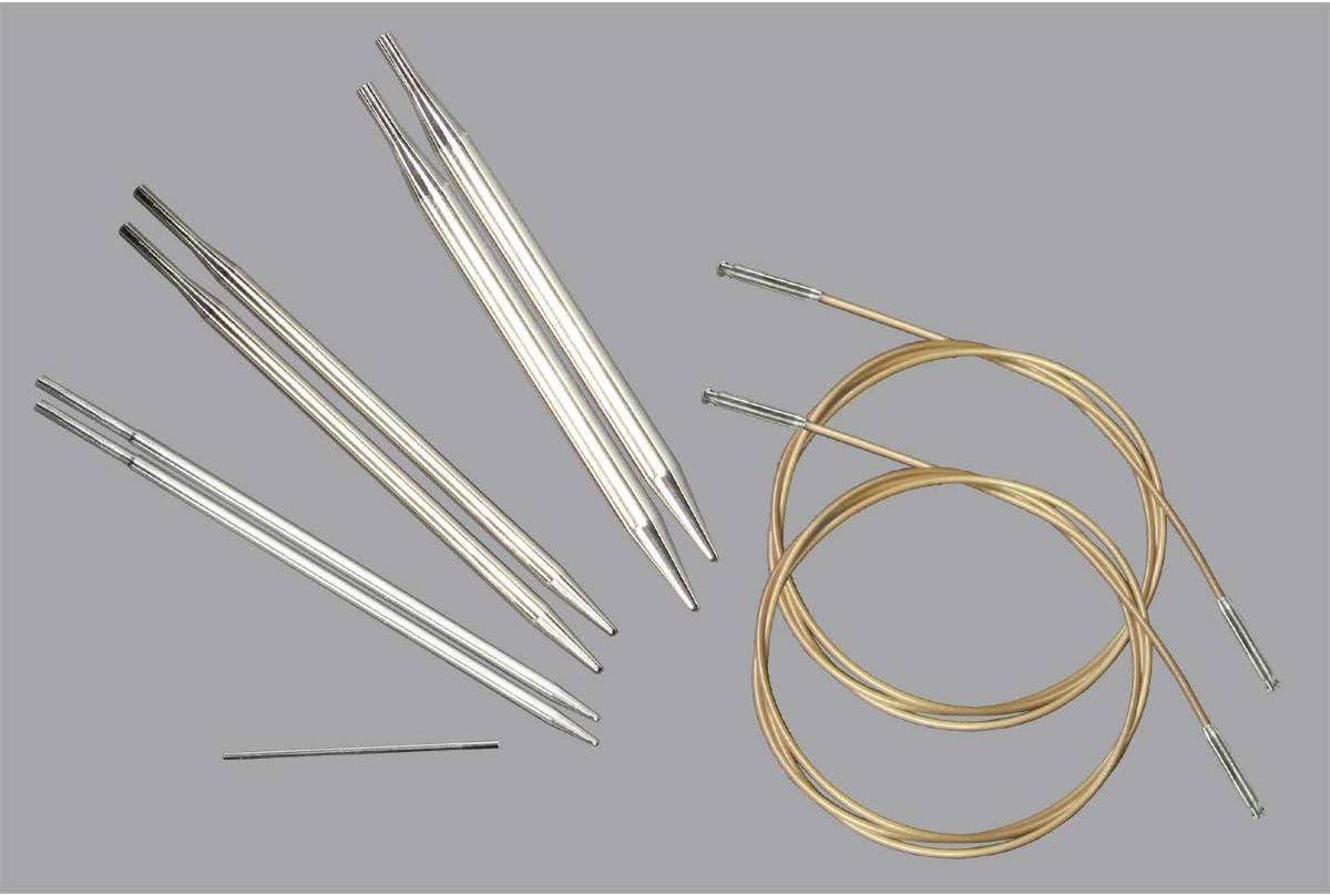 • Set enthält 3 Nadelspitzenpaare in 3.50/4.50/6.00mm, 2 Nadelseile in 60/80cm und eine Nadelseilkupplung zum verbinden der beiden Nadelseile zu einem langen Seil