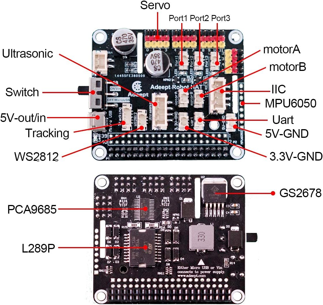 - Angetrieben von 2x18650 Batterien (NICHT im Lieferumfang enthalten). Sie müssen Ihre eigenen Batterien vorbereiten. Raspberry Pi ist NICHT enthalten.