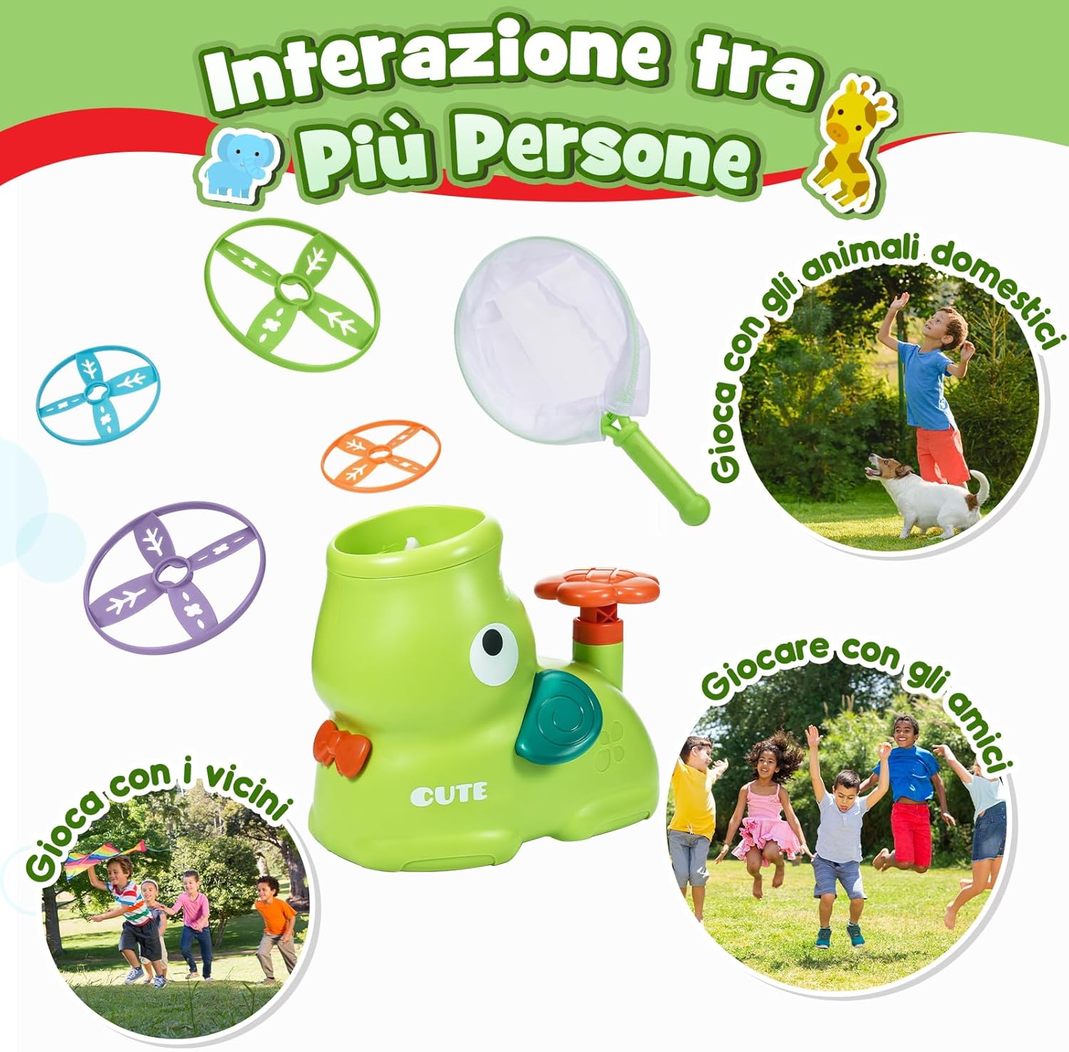 - 【Brandneues Spielzeug im Freien】: Legen Sie den fliegenden Spielzeugshooter auf den Launcher, dann drücken Sie das Pedal auf das Spielzeug, das auftaucht. Sobald der Teller entfernt ist, kann er mit einem Netz gefangen werden,jagen, um fliegende
