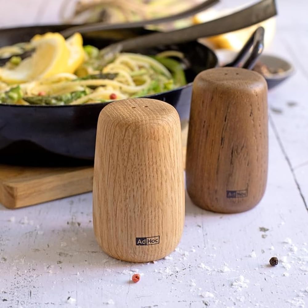 AdHoc GS30 Set aus Pfefferstreuer und Salzstreuer Yoko | Naturholz Eiche geölt hell & dunkel | 2-fac