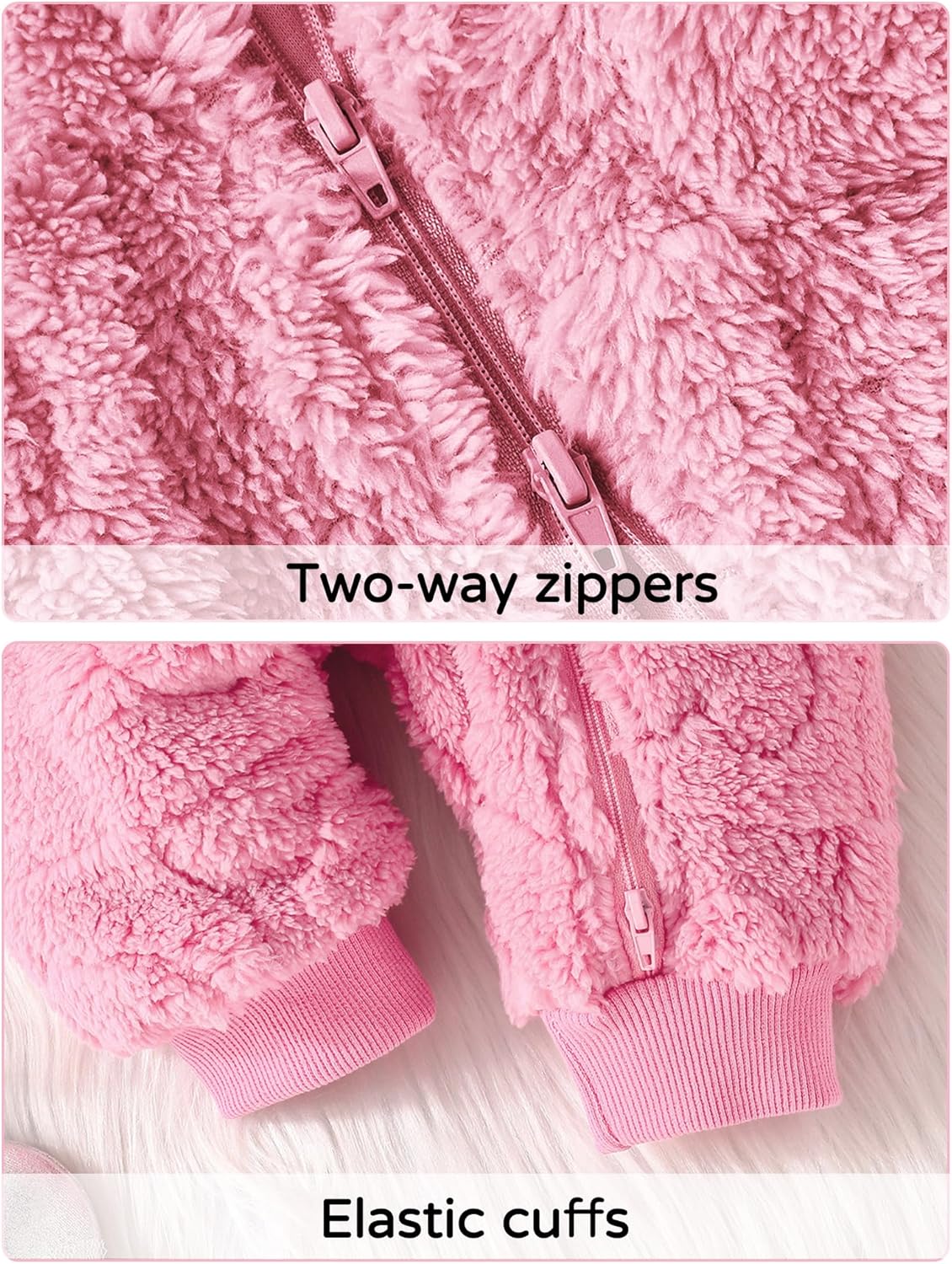 - [FEATURES]- Baby-Fleece-Kapuzenpullover mit Bärenohren Kapuzendesign, Zwei-Wege-Reissverschluss, vom Hals des Babys bis zur Zehenlinie, Kapuzenpullover Ganzkörper-Gesamtdesign, elastische Bündchen, Gesamtschutz des Babys vor Wind und Kälte, es ist
