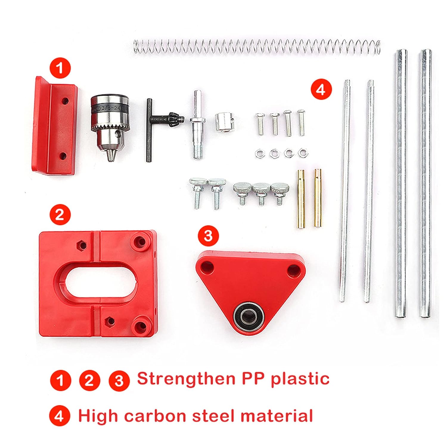 - 【Voll ausgestattet】Mit verkeiltem Bohrfutter, konischer Tiefenkontrollwelle und Begrenzungsring, Federrückzug, umkehrbarem Bohrfutterhalter, eingebauter V-Nut, Ausrichtung und einstellbarem Anschlag.