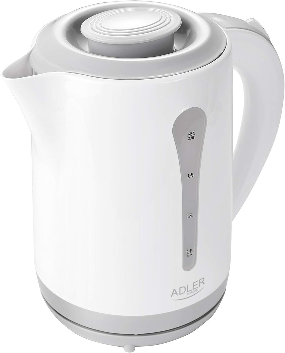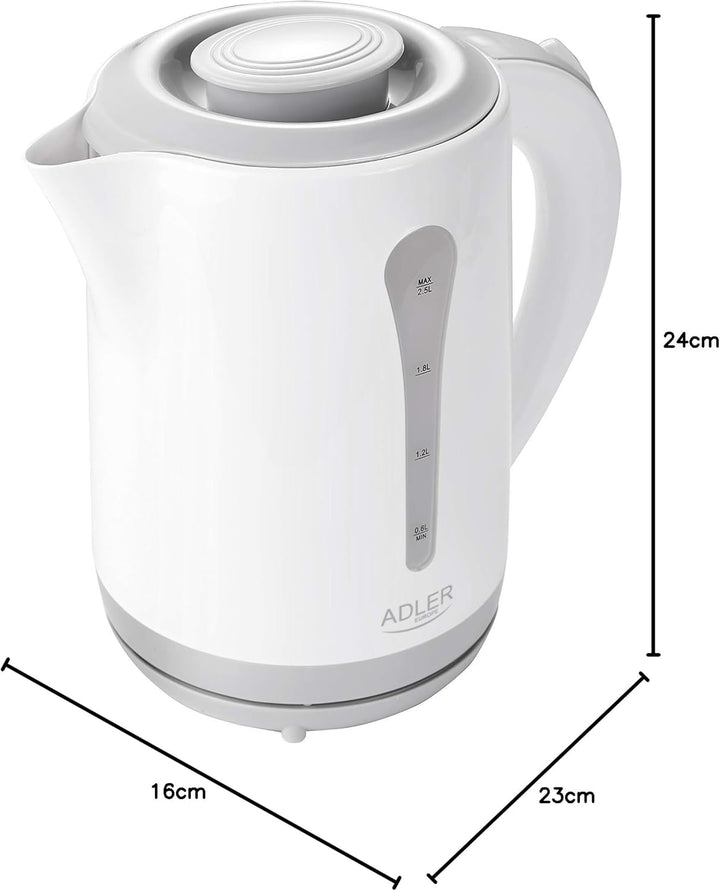 - Dieser moderne und praktische Wasserkocher kann 2,5 L Wasser auf einmal kochen.Er ist in klassischer Grau-weisser Farbe verfügbar.