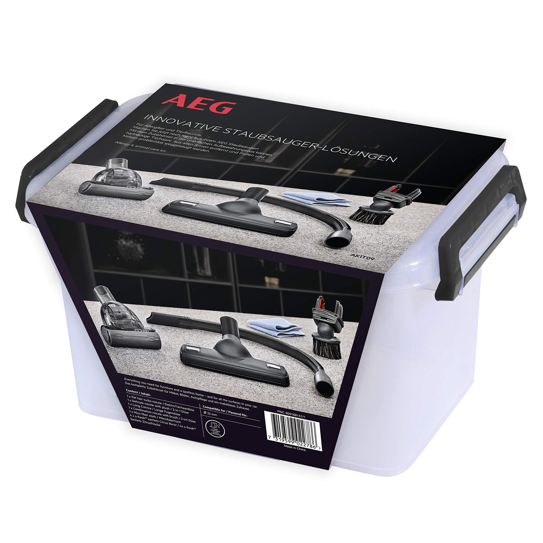 - Lieferumfang: 1x Polsterdüse, 1x Fugendüse, 1x Möbelpinsel, 1x Turbodüse, 1x Aufbewahrungsbox, 1x Mikrofasertuch, 1x Duftgranulat // Passend für: Staubsauger mit 32 mm Rundrohr
