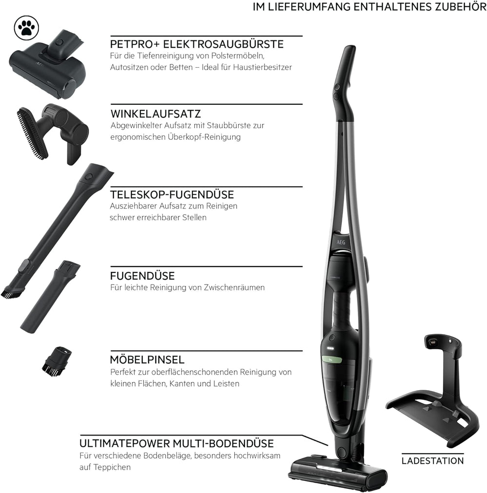 - Lieferumfang: 1x CLEAN ÖKO 6000, PetPro+ Elektrosaugbürste, 2x Hygienefilter, 1x Möbelpinsel, 1x Fugendüse, 1x Teleskop-Fugendüse, 1x Winkelaufsatz mit Staubbürste, 1x Roll-in/Roll-out-Ladestation; Zubehör-Empfehlung: AZE137 Power-Softrolle,
