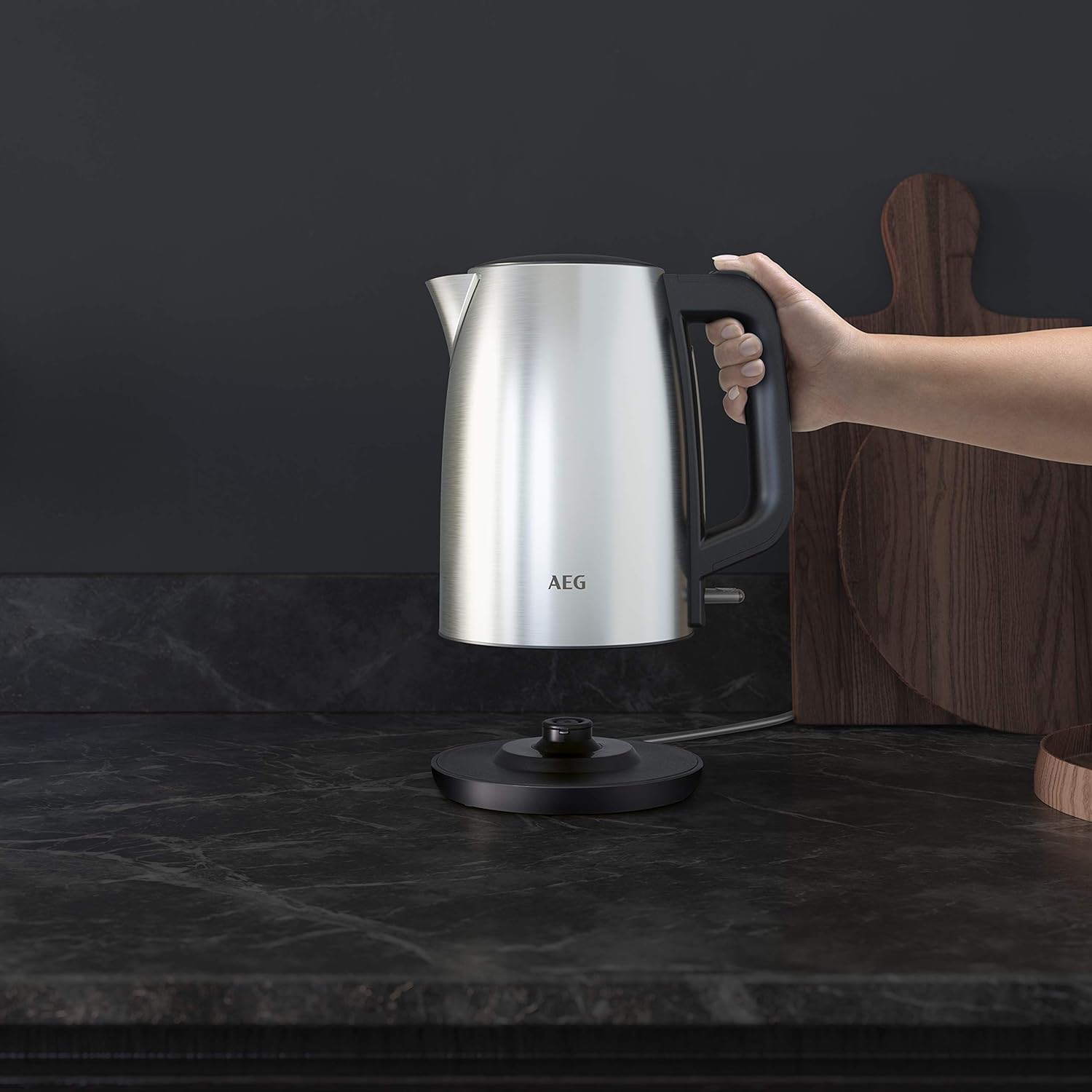 - Hochwertige Optik: Die Metallic-Oberfläche fügt sich in jede Umgebung grossartig ein - der Wasserkocher verfügt über eine 360° Basis zum Absetzen/Hochnehmen aus allen Richtungen