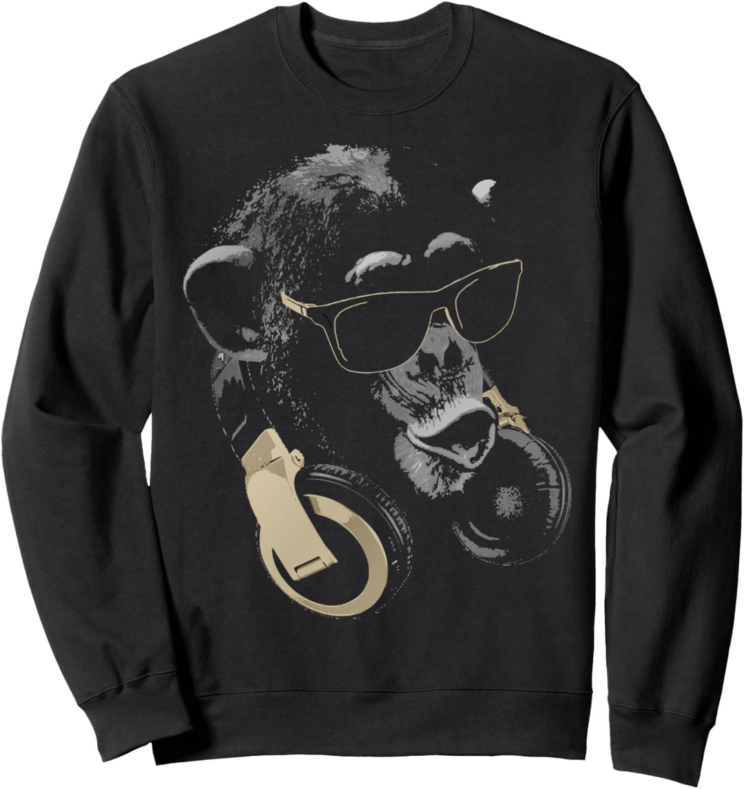 Affe Schimpanse mit Sonnenbrille und Kopfhörer Sweatshirt