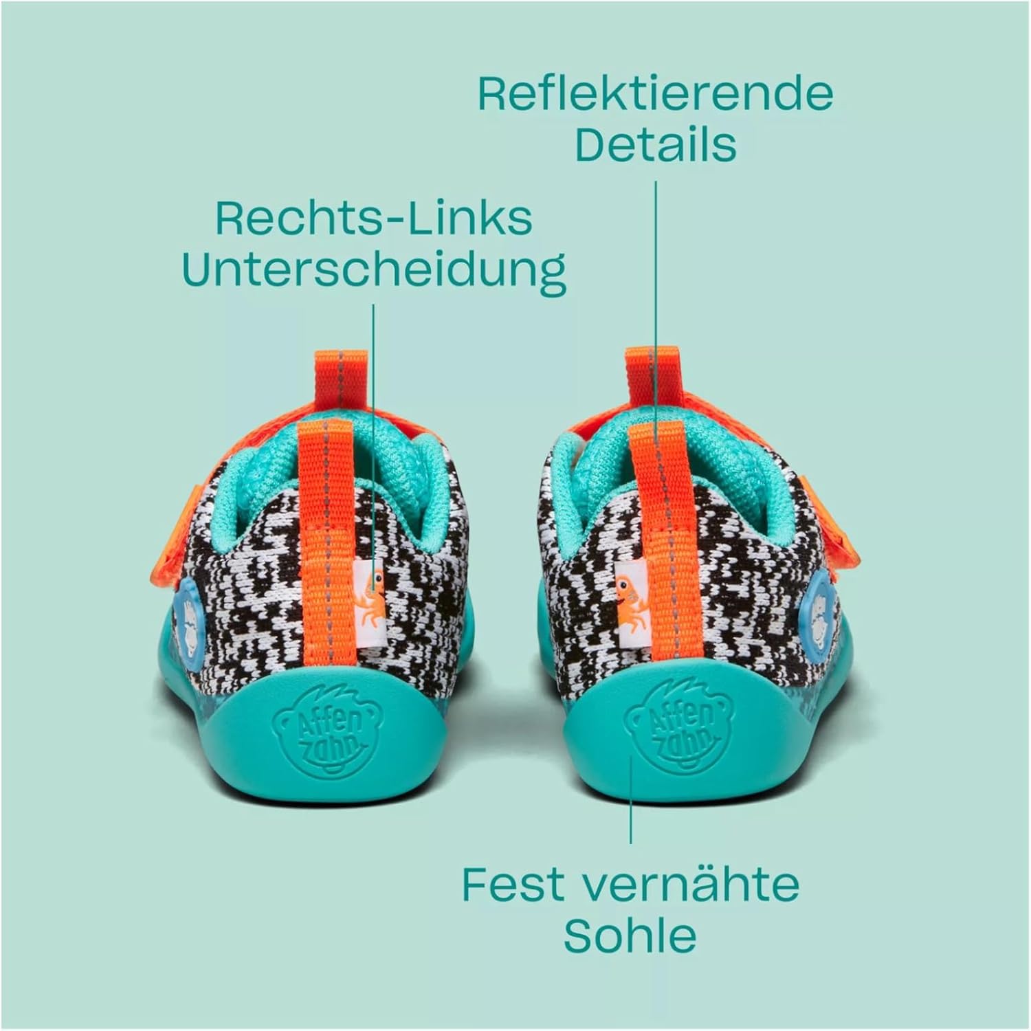 - Bunt & farbenfroh – Leuchtende Farben und Tiermotive machen diesen Schuh einzigartig. Der Minimalschuh im Sneaker-Design ist der ideale Begleiter für warme Tage.