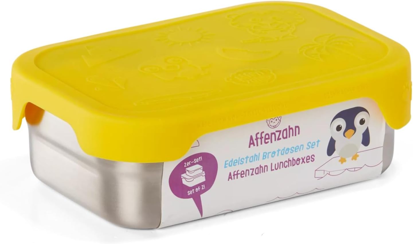 • Lieferumfang: Die Affenzahn Brotdosen-Sets bestehen aus zwei Brotdosen in unterschiedlichen Grössen. In die grössere (16,5 x 12 x 6 cm) passen beispielsweise Brote, die kleinere ist für Obst oder Snacks geeignet.