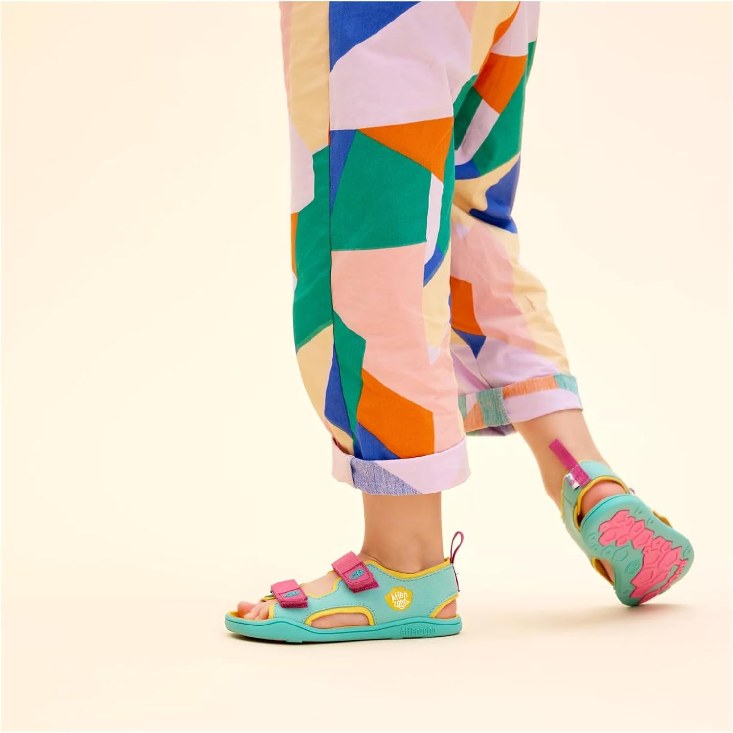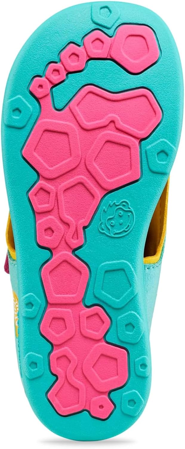 PRODUKTBESCHREIBUNGEN Luftige Sandale mit Klettverschlüssen für sonnige Tage. Dieser Schuh ist vegan.Unsere Materialien sind frei von PFC. Per- und Polyfluorierte Stoffe werden oft in der Textilindustrie verwendet, diese sind allerdings nicht biologisch abbaubar und somit auch nicht gut für unsere Umwelt. Dieser Schuh ist zu 100% aus veganen Materialien hergestellt. Das ist nicht nur gut für die Natur, es fühlt sich auch spitze an! Unsere Innensohle besteht zu 30% aus Algen-Schaum von BLOOM, welche den weltweit ersten, mit Algen versetzten EVA-Schaum für die Schuhindustrie entwickelt haben. Die Affenzahn Schuhe sehen nicht nur tierisch gut aus, sondern haben auch richtig viel zu bieten. Alle Affenzahn Schuhe sind nach dem Minimalschuhprinzip entwickelt: Die Naturform bietet genug Platz für jeden Zeh, so dass sich die Füsse frei bewegen und gesund entwickeln können. Ihre dünne, biegsame Sohle ist nur so dick wie nötigt und sorgt dafür, dass Kinder den Untergrund, auf dem sie sich bewegen, unmittelbar spüren, entdecken und erfahren können.