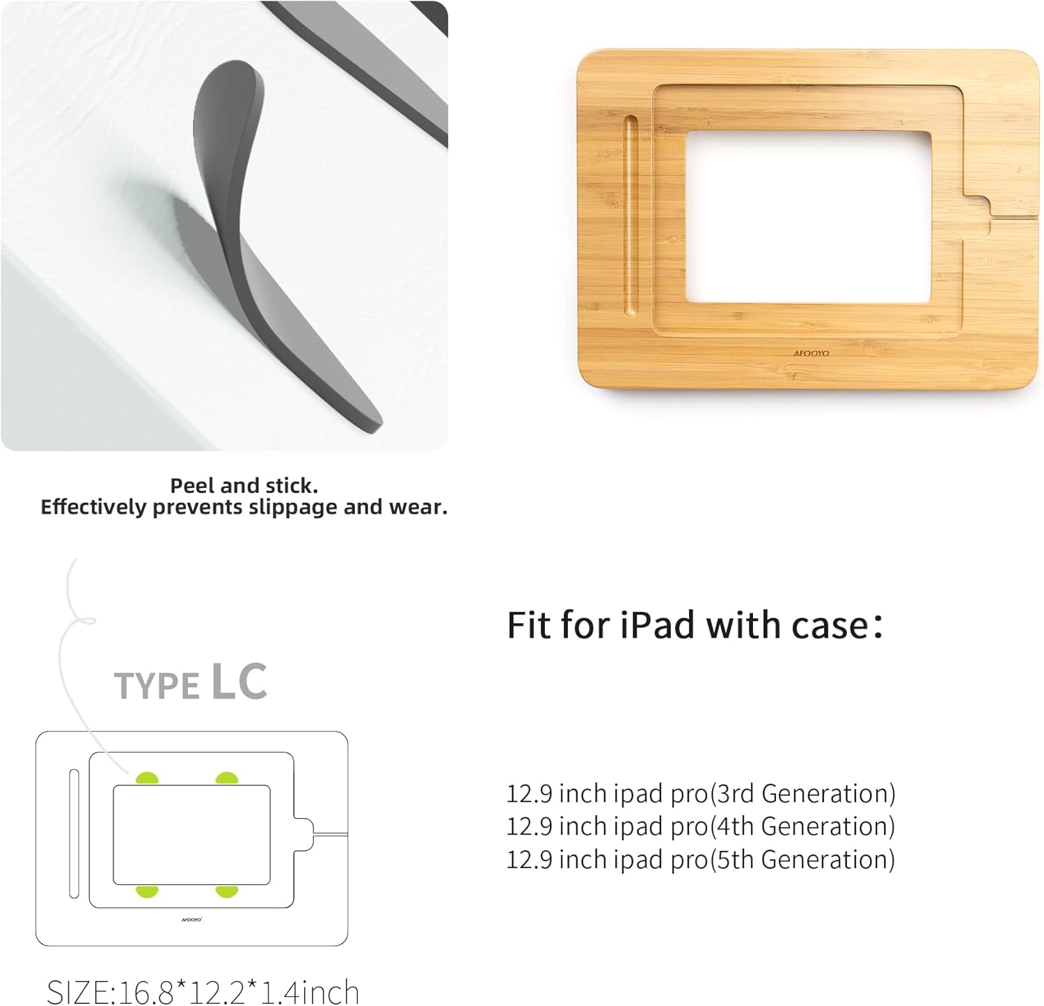 - Hochwertiger natürlicher Bambus: Mit einem stilvollen Aussehen und einem eleganten Rand ist die Platte aus natürlichem Bambus, der manuell ohne Grate poliert wird. ABS-Material unterstützt diesen Tablet-Ständer. Silikon-Pads schützen Ihr Tablet vor