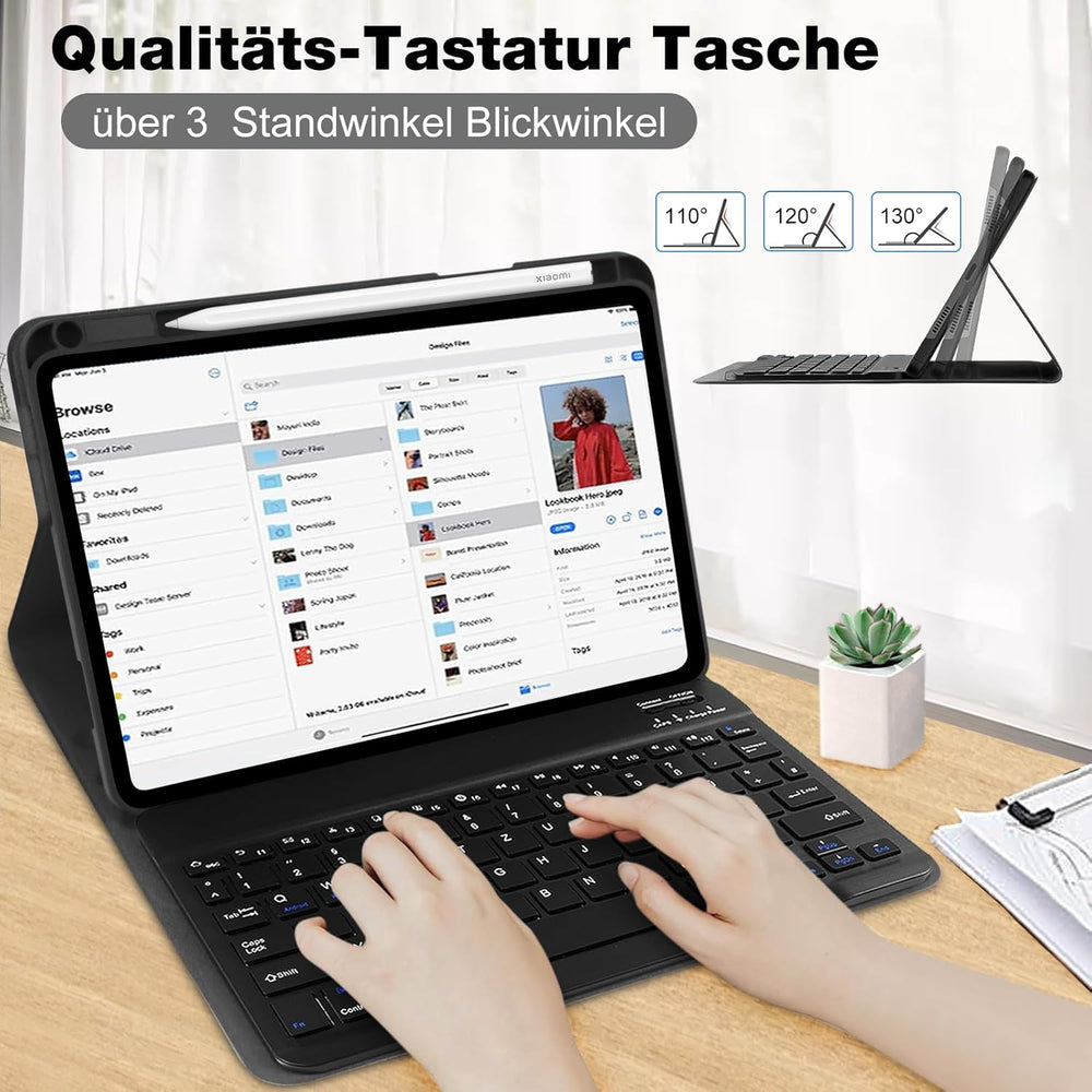 - [ Qualitäts-Tastatur Tasche ] Das tastatur hülle für xiaomi pad 6 tastatur hülle ist aus hochwertigem PU Material gefertigt und verfügt über 3 einstellbare Blickwinkel, die 110°, 120° bzw. 130° unterstützen. Sie können den Winkel entsprechend