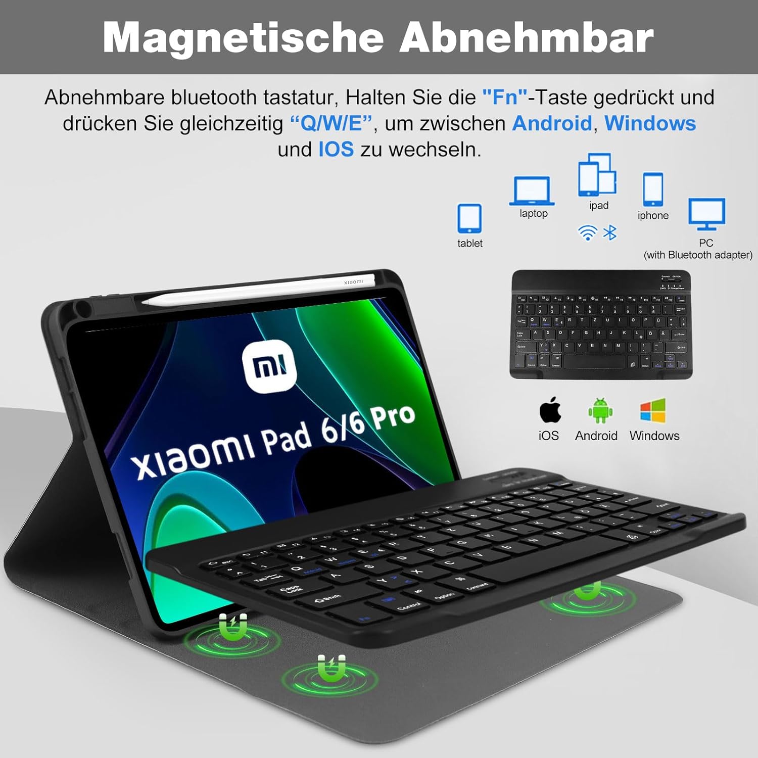 - [ Magnetische Abnehmbar ] tastatur hülle für Xiaomi pad 6/6Pro tastatur und schutzgehäuse können voneinander getrennt werden, Lässt sich leicht in einen laptop verwandeln, ideal für reisen und geschenk. Vor allem tastatur mit stifthalter und