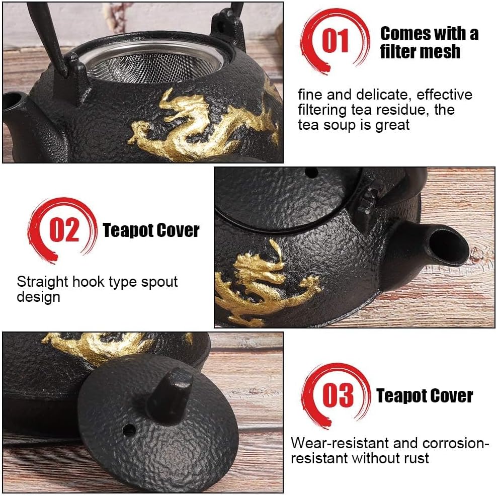 • 【Gut für Ihren Körper】 Der japanische teekanne ermöglicht ein allmähliches und gleichmässiges Erhitzen. Es hilft, die grösste Menge an Geschmack aus den Teeblättern in das Wasser zu bringen. Eine gusseiserne Teekanne kann die Elemente von Fe2