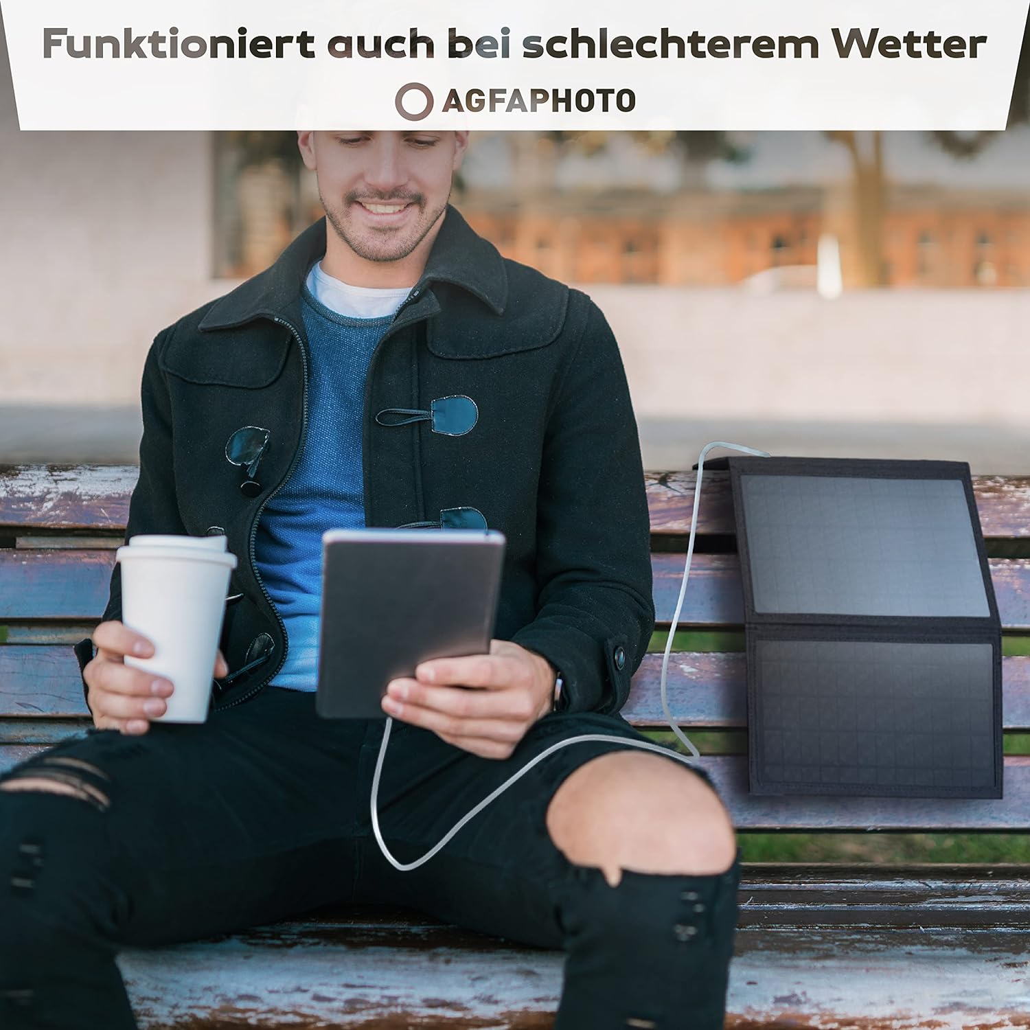 - ☀️ Outdoor Gerät: Unser Mobile Solarpanel können Sie bei jeder Unternehmung mitnehmen. Es ist der ideale Begleiter am See, beim Camping, beim Wandern und sogar beim Angeln. Nutzen Sie unser faltbares Solarladegerät für Ihr Handy, Ihr Tablet oder