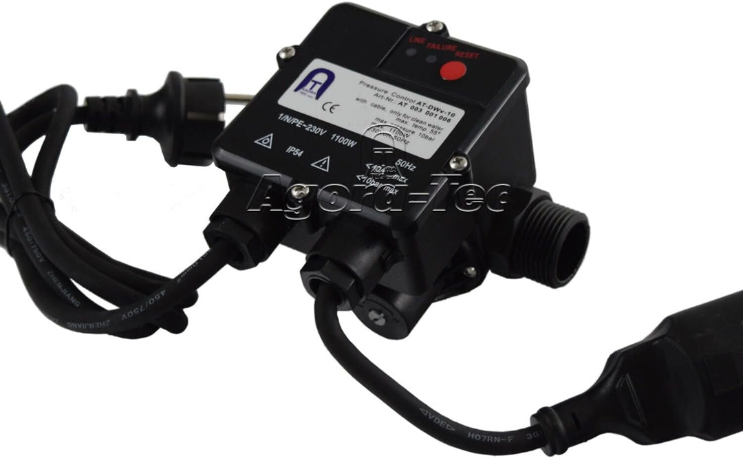 - intelligenter Druckschalter zur Automatisierung Ihrer Wasserversorgung im Haus und Garten, steuert Kreisel-, Tauch- und Tiefbrunnenpumpen (beachten Sie dazu die technischen Leistungsdaten des Druckschalters und der jeweiligen Pumpe)