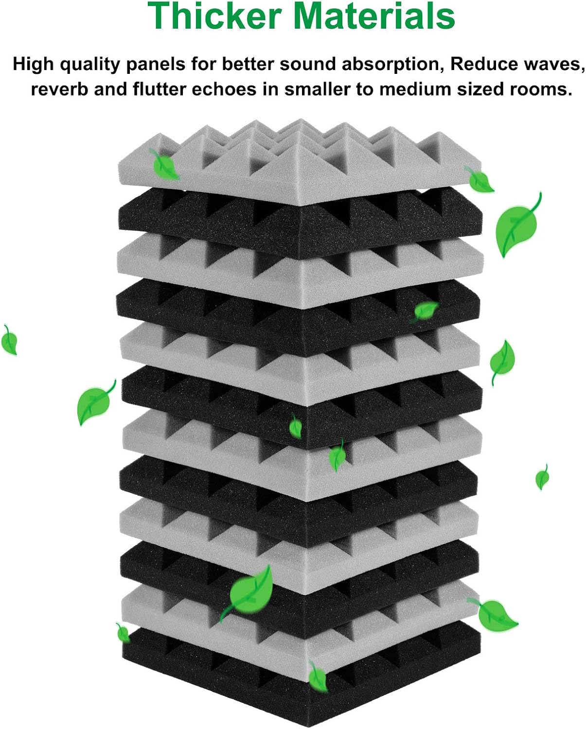 • 【DICKES & INTELLIGENTES MATERIAL】: Wir verwenden dickes und umweltgerechtes Material mit Flammschutz für die schallabsorbierenden Schaumstoffplatten. Daher kann es in kleinen und mittleren Räumen sicher verwendet werden. Die Akustikschaum-Platten absorbieren den Schall gut und reduzieren Nachhall und Flatterecho.