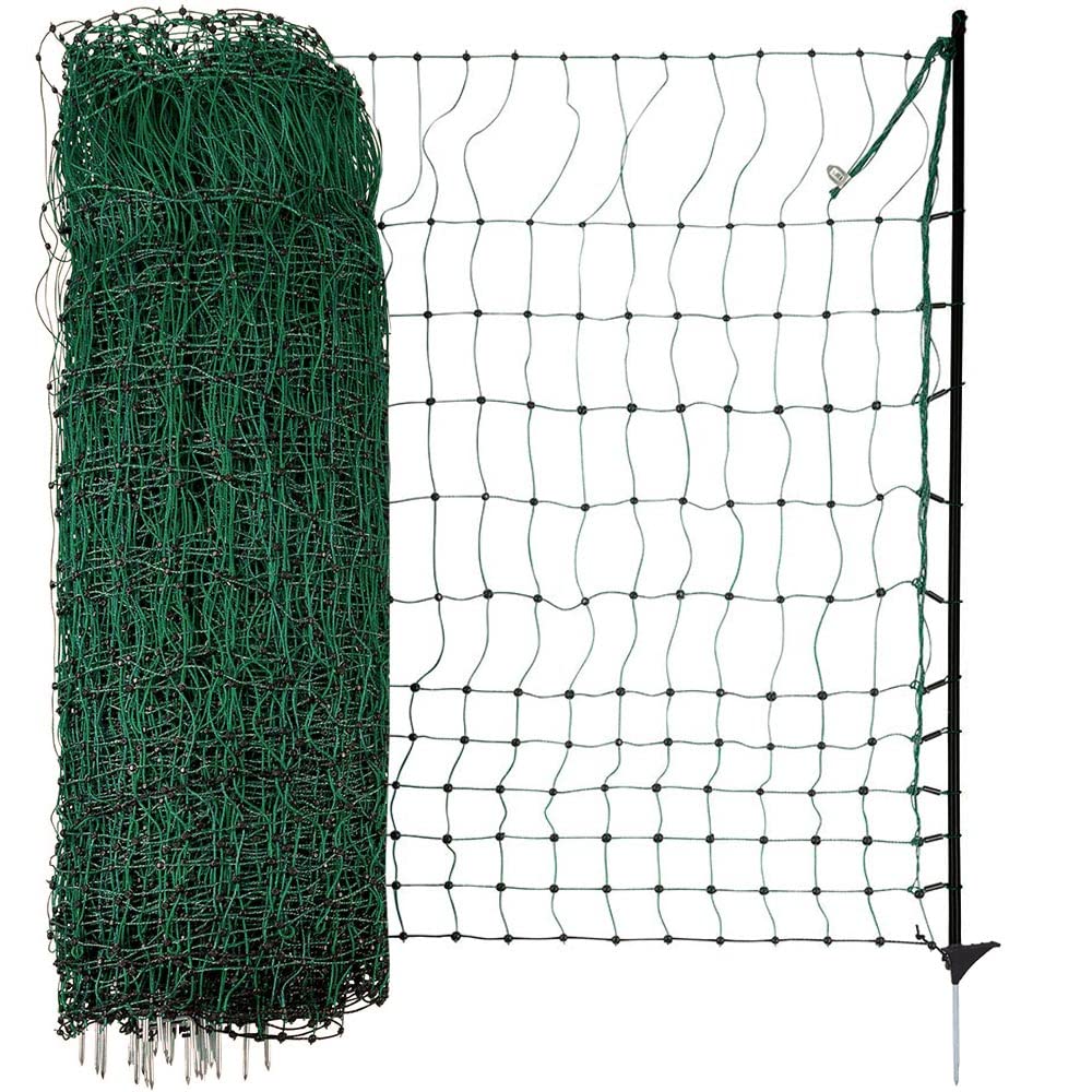 - 🐔♥️ ROBUSTE QUALITÄT: Das Geflügelnetz steht dank stabiler Pfähle mit Einzelspitze fest am Boden. Die reissfesten Knotenpunkte und engen Litzen verhindern ein Durchschlüpfen des Geflügels durch den Weidezaun. Auch Fressfeinde finden keinen