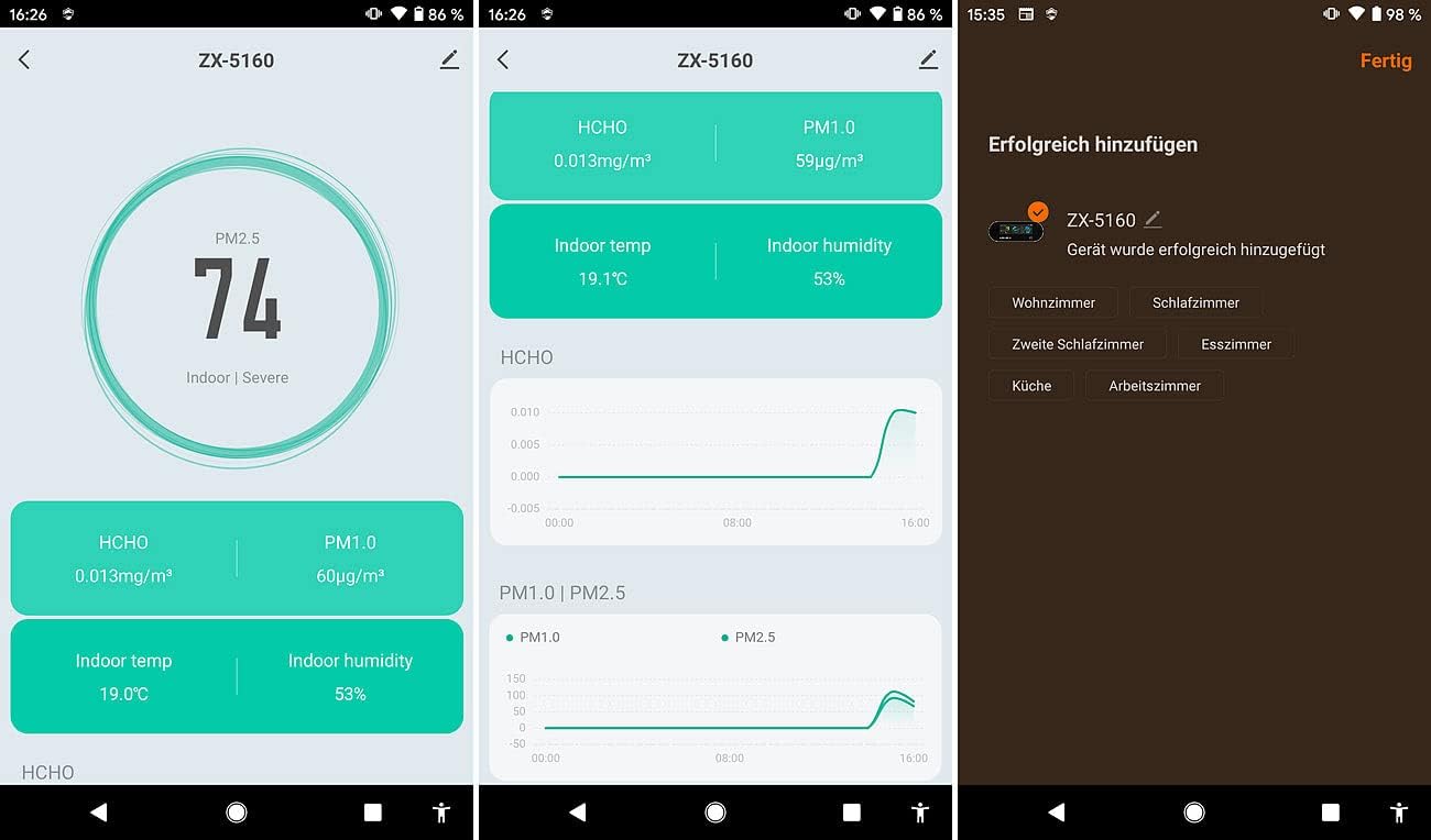 • Bestimmt auch die Belastung durch Feinstaub (PM1/2,5), z.B. durch Laserdrucker oder bei Kaminbetrieb • Speichert Messwerte bis zu 1 Jahr im Gerät und für unbegrenzte Dauer in der App • Automatische Funktionen programmierbar, z.B. zum Schalten