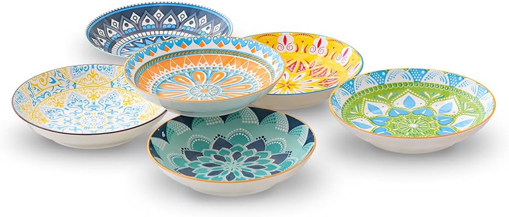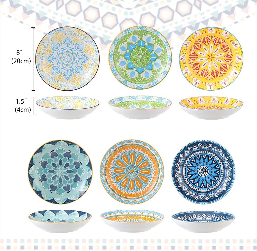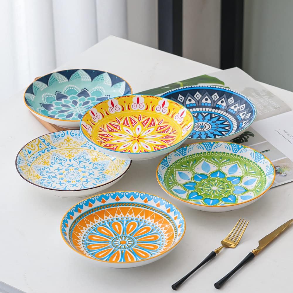 - 【Einzigartig gestaltete bunte teller】 Im Vergleich zu schlichtem Geschirr gleichen Designs sind die Farben und Muster in jeder unserer pastateller tief unterschiedlich, was Ihrer Küche viele leuchtende Farben verleihen kann. Auch als Dekoration auf