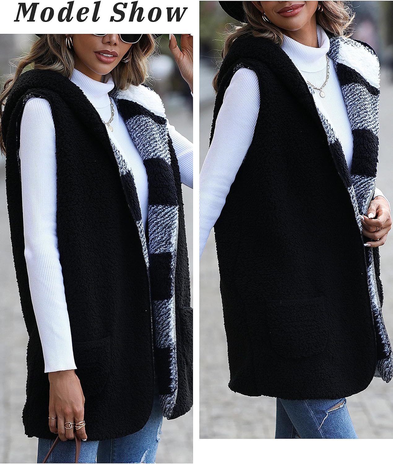 AIEOE Ärmellose Mäntel Damen Weste Fleecejacke Weich Warm für Herbst Winter S Style03-schwarz, S Sty