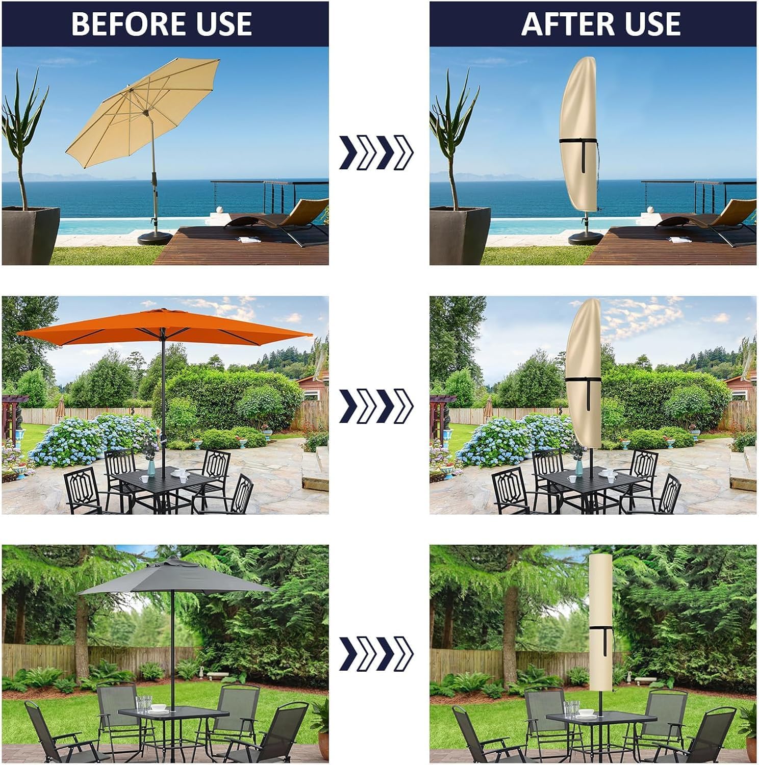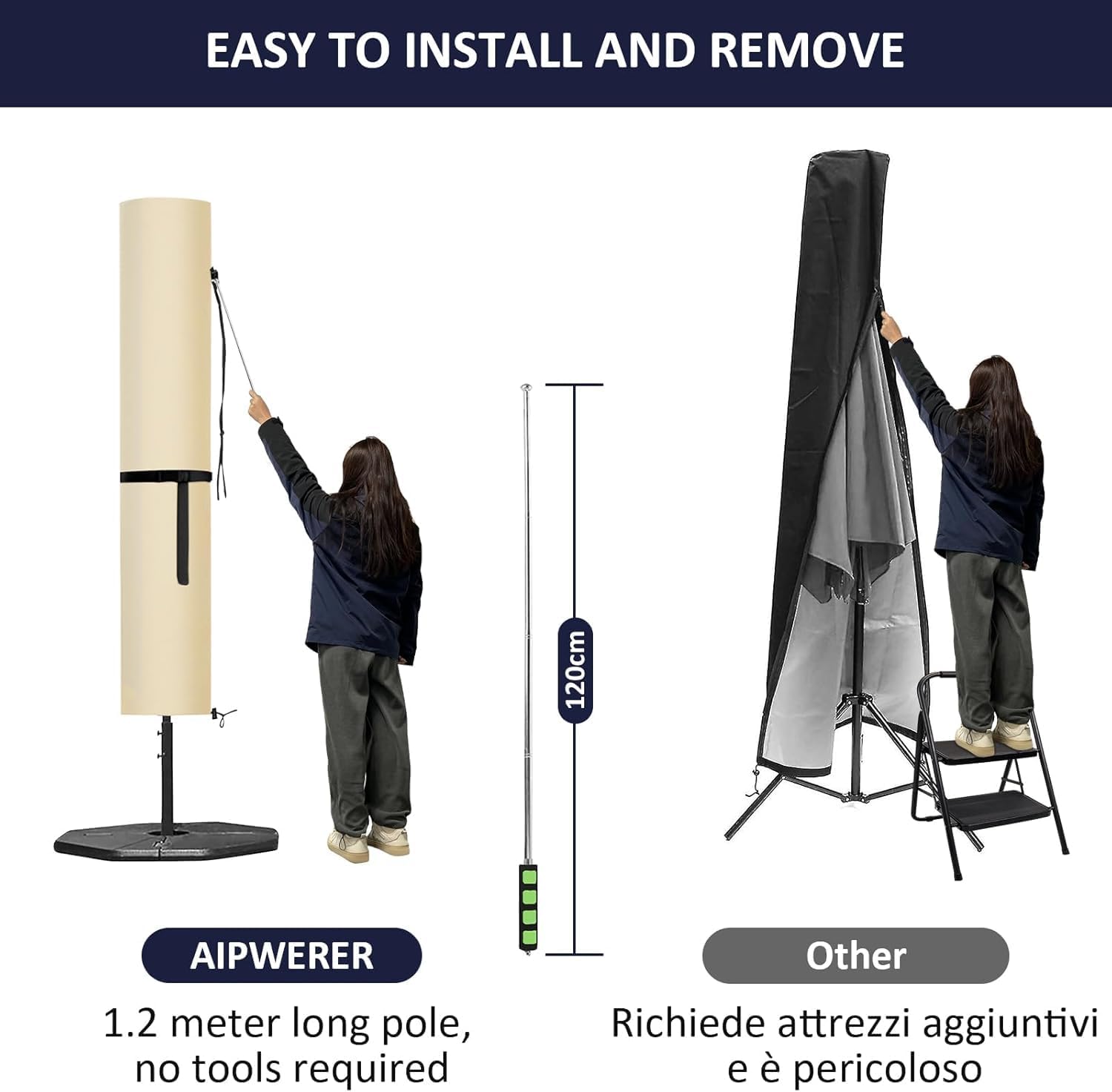 - ✅【EINFACHE INSTALLATION】: Die Sonnenschirmhülle ist mit einem Reissverschluss an der Seite ausgestattet und wird mit einer Teleskopstange geliefert, die es Ihnen ermöglicht, die Sonnenschirmhülle ohne Leiter zu installieren, so dass Sie die