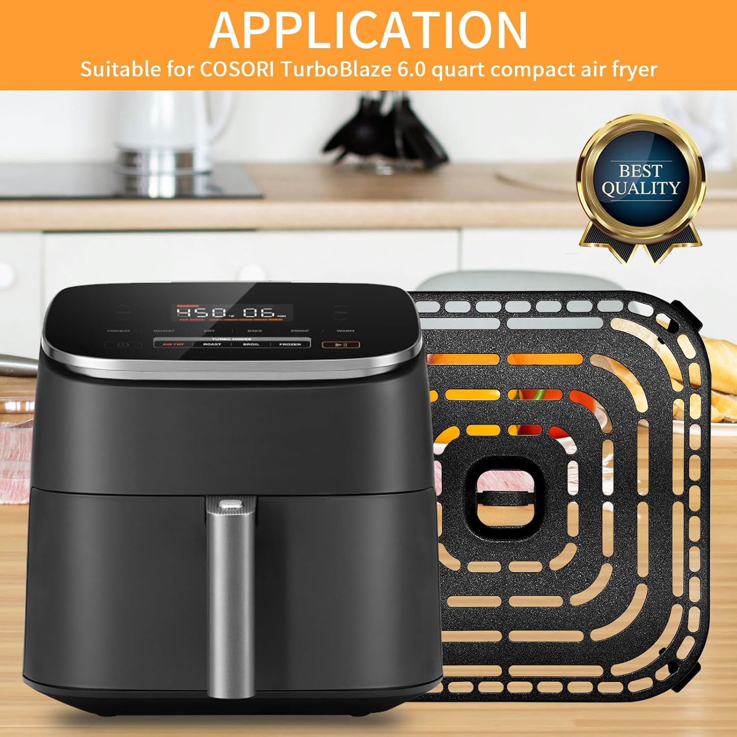 - Produktgrösse: Dieses Luftfritteusen-Ersatzteil misst 22,6 x 22,6 cm, Design für quadratische Cosori Air Fryer Pro TurboBlaze 6 Qt und andere Luftfritteusen verwenden die gleiche Grösse Grillplatte, wie Beautiful Drew Barrymore Luftfritteuse. Perfekt