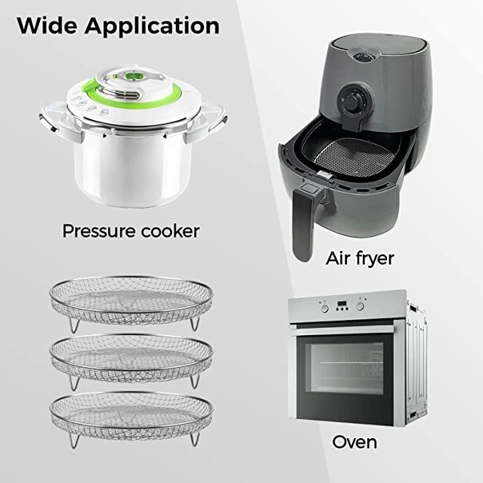 - Einfach zu bedienen: Das stapelbare Design bietet Ihnen viel Komfort, um Platz in Ihrer Heissluftfritteuse oder Ihrem Schnellkochtopf zu sparen. Sie können die Heissluftfritteuse oder den Schnellkochtopf verwenden, um eine Vielzahl von Lebensmitteln