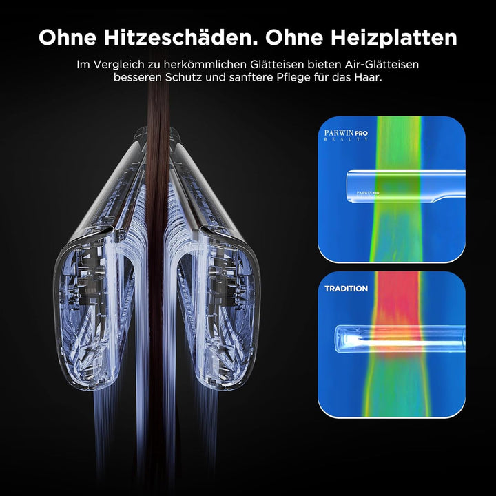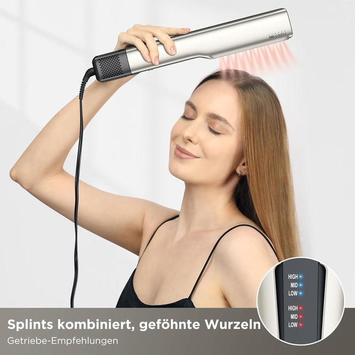 - Ohne Heizplatten, ohne Hitzeschäden - Der innovative Air-Haarglätter verwendet präzise gerichtete, erwärmte Luftströme, um das Haar effizient zu glätten. Anders als herkömmliche Glätteisen, die hohe Temperaturen nutzen, um Feuchtigkeit zu