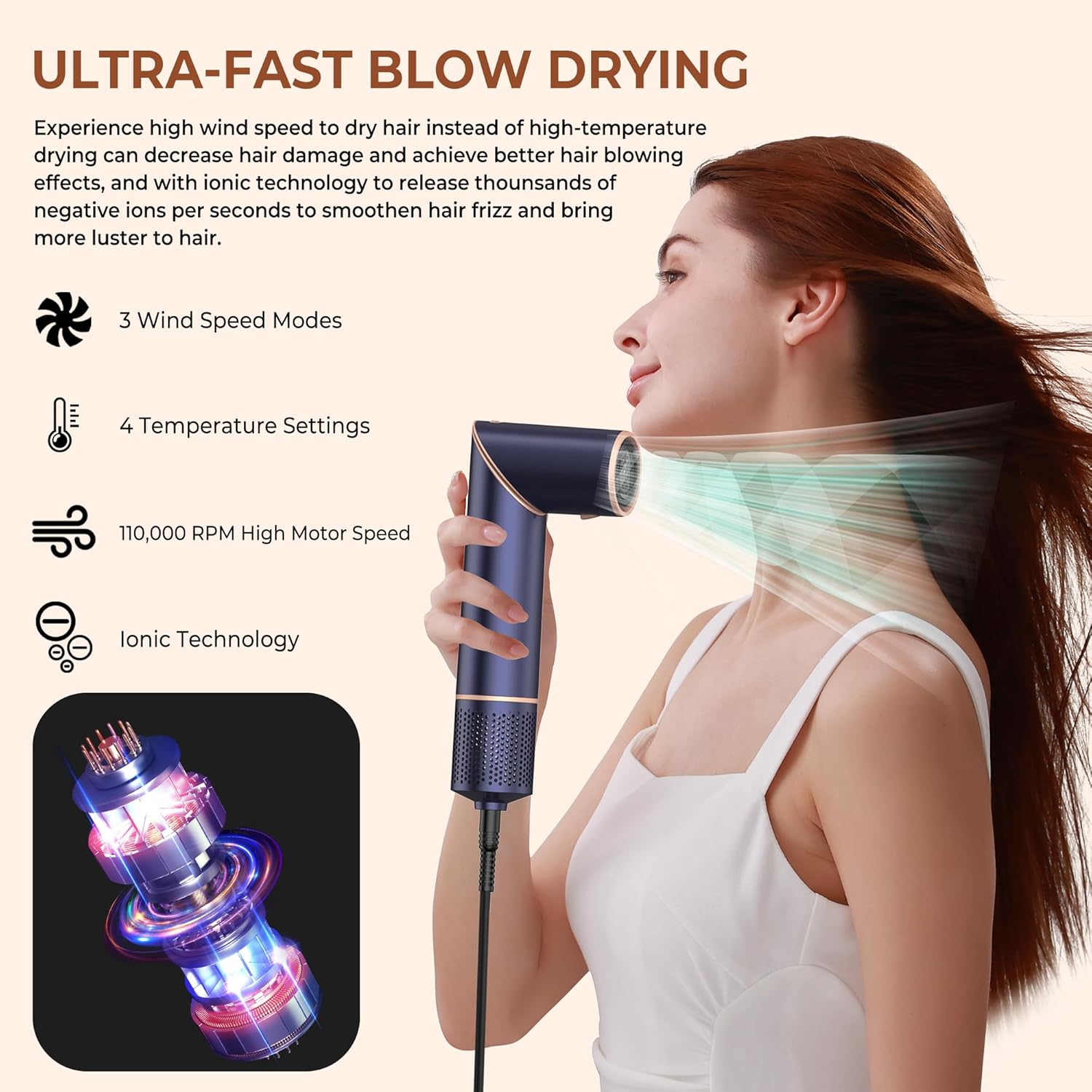 - Ionen technologie für die haarpflege: Der haartrockner verfügt über eine kontinuierliche negativ ionen technologie. Millionen negativer ionen neutralisieren elektrische ladungen und reduzieren so effektiv statische aufladung und frizz effektiv