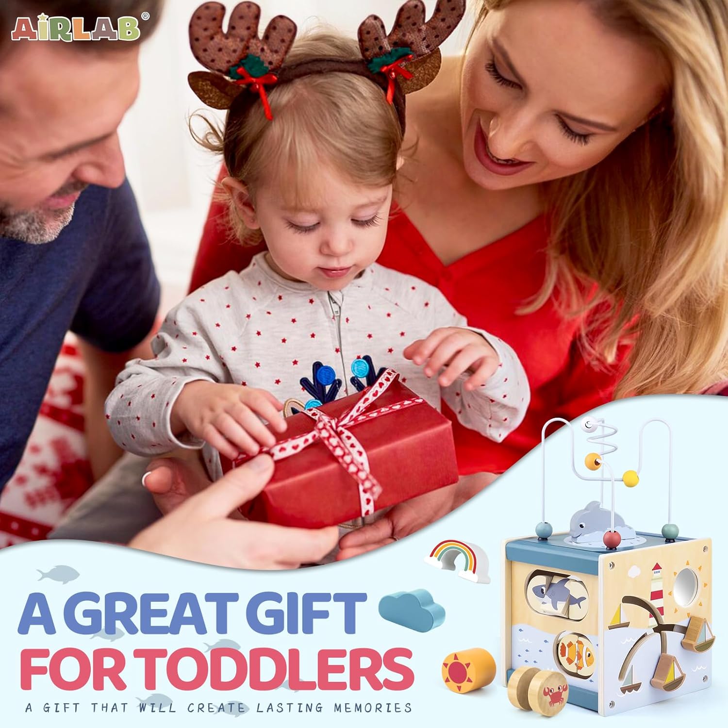 - MOTORIKWÜRFEL AUS HOLZ: Airlab Motorikwürfel mit Meeresmotiv umfasst 6 lustige Spiele, inkl. Motorikschleife, Formsteckspiel, Mini-Spiegel, Segeln-Gleitblöcke, Rotierende Puzzles, Rollende Blöcke usw. Jede Seite bringt neue Frische ein, wobei die