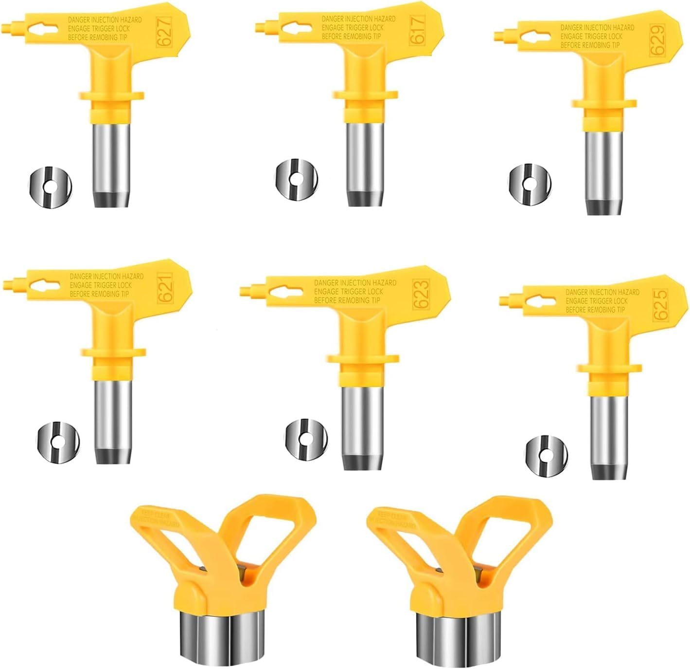 - Breite Kompatibilität: diese Farbsprühspitzen sind mit airless Farbsprühgeräten kompatibel (Typ 617,621,623,625 627,629), und die Palette der verschiedenen Modelle variiert entsprechend der Grösse der Öffnung; Wählen Sie einfach die passende Düse