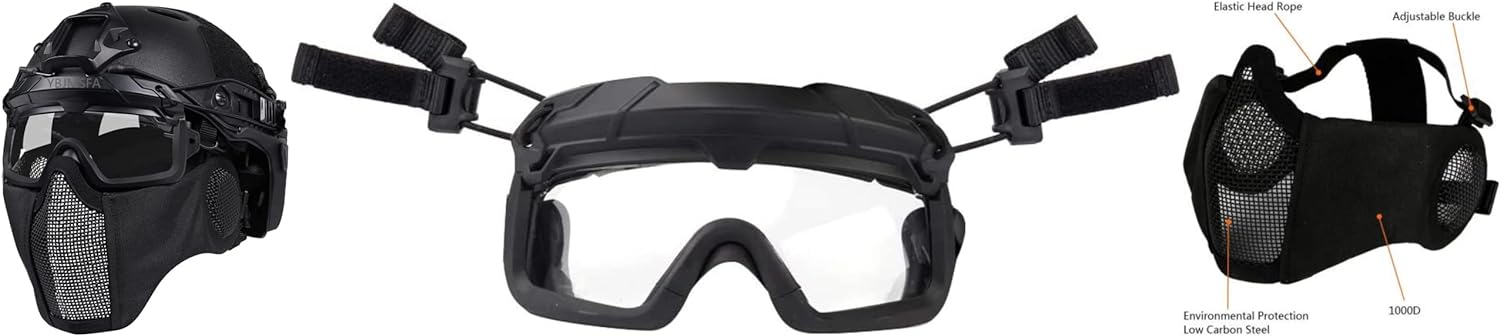 - Voller Schutz: Die Airsoft Helm Halbgesichtsmaske und -brille sind eine coole und perfekte Kombination, die Drei-in-Eins-Maske, Helm und Schutzbrille bieten eine vollständige Palette von Kopfschutz. Die Helmmaske und -brille können separat verwendet