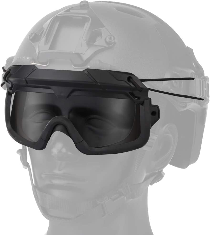 - Tactical Goggles bestehen aus TPE+ABS Kunststoff+PC Linse, 90g//Grösse: 18.5.8.5cm, die natürlich dem Gesicht passen und atmungsaktiv, bequem, verschleissfest, schlagfest sind. Sie können entsprechend den verschiedenen Spuren des Helms eingestellt